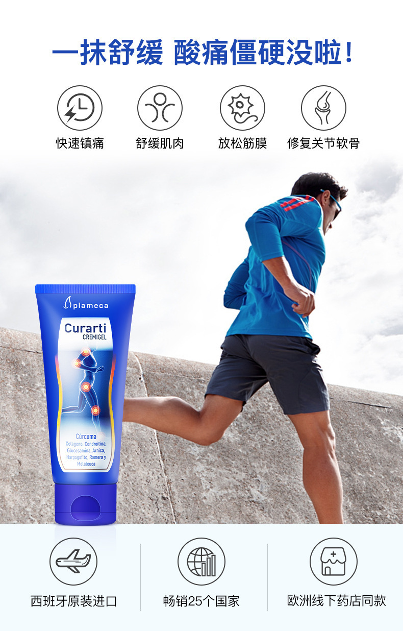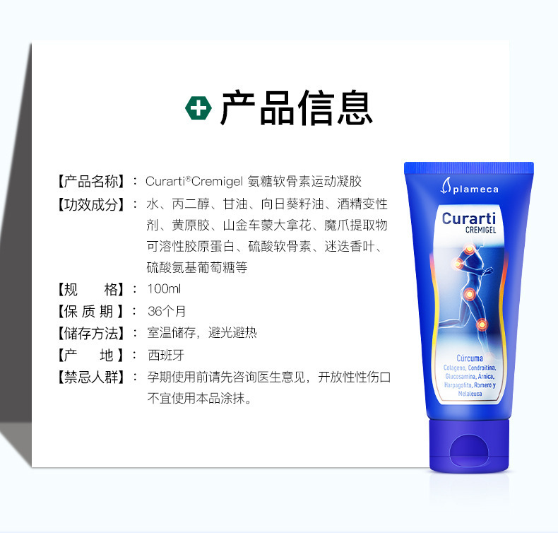 Спортивный гель Curarti с куркумином и глюкозамином в наружном применении маленькая синяя туба