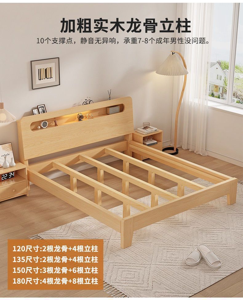 Кровать из массива дерева 1.5м для дома, 1.8м двуспальная, простая современная, экономичная, 1.2м односпальная кровать