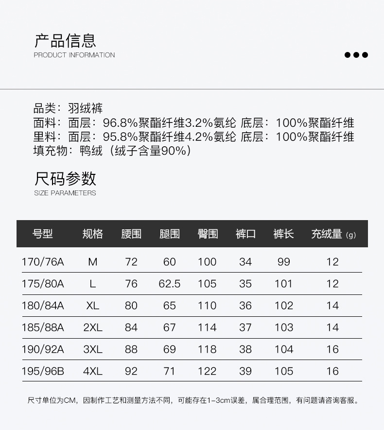 Категория продукта Down pants