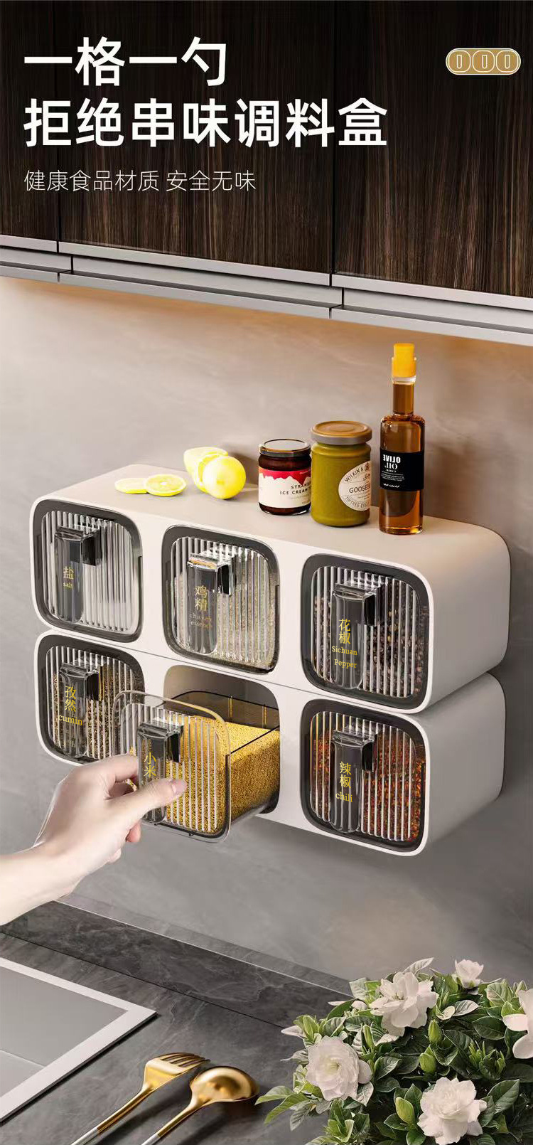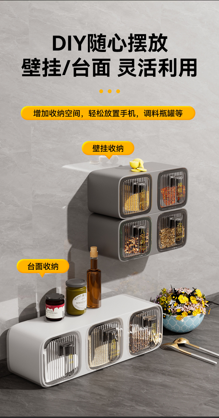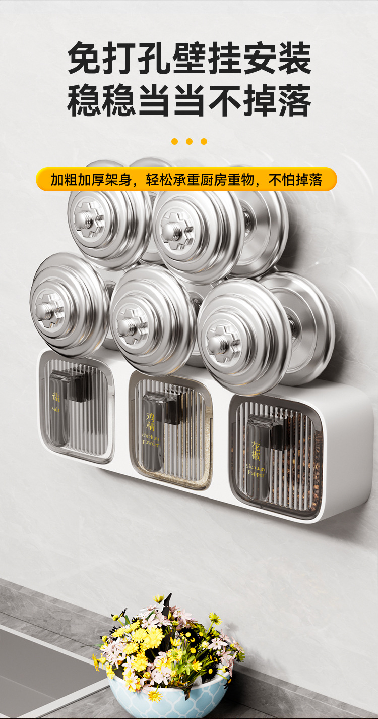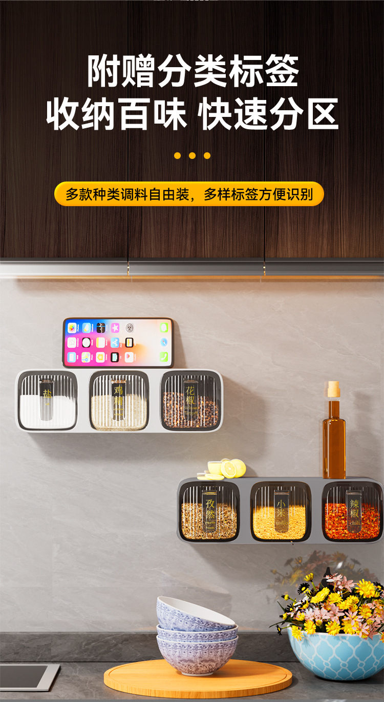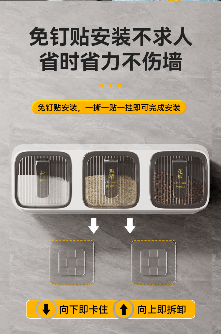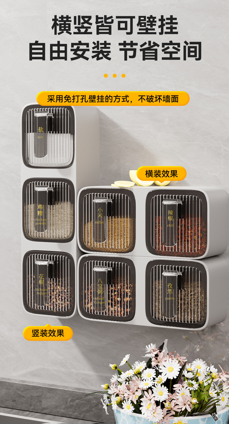Коробка для приправ Настольный кухонный стеллаж Настенный безотверстный контейнер для соли и приправ Многофункциональная банка для специй