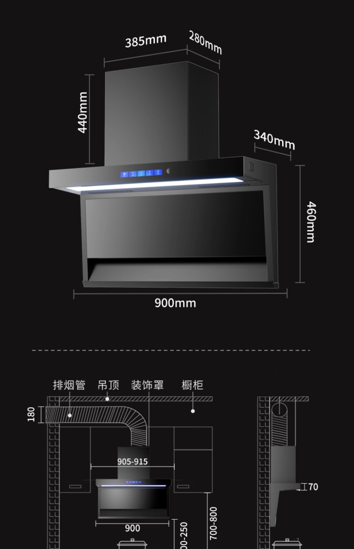 Комплект газовой плиты Royalstar с вытяжкой, бытовой комплект с верхней и боковой двойной вытяжкой, двухкомпонентная комбинация