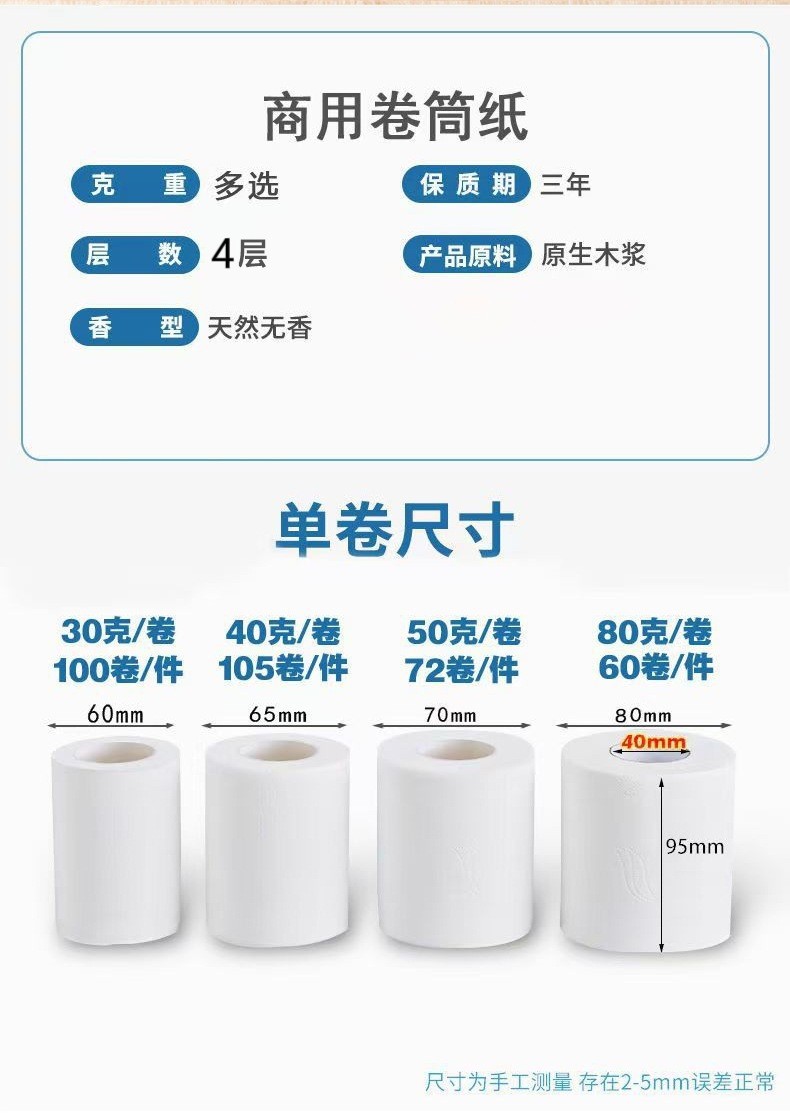 ![]() | Hollow roll [30g*100 rolls] white card tissue paper core for hotel use | ¥0.28 / ≈ 3 ₽ | 9995299 | 6098461883850 |