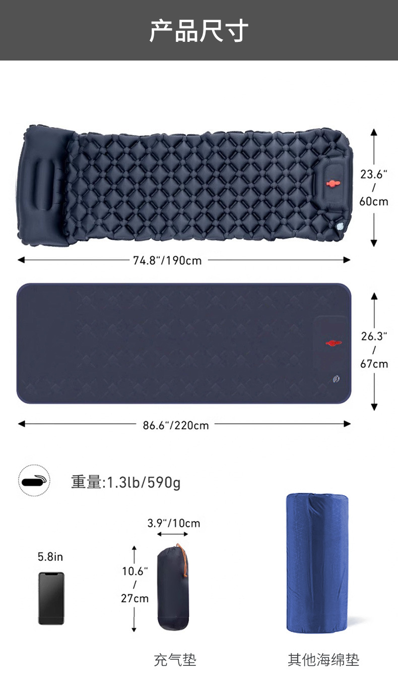 充气垫的尺寸:190*60*5cm/200*70*7/190*120*5cm