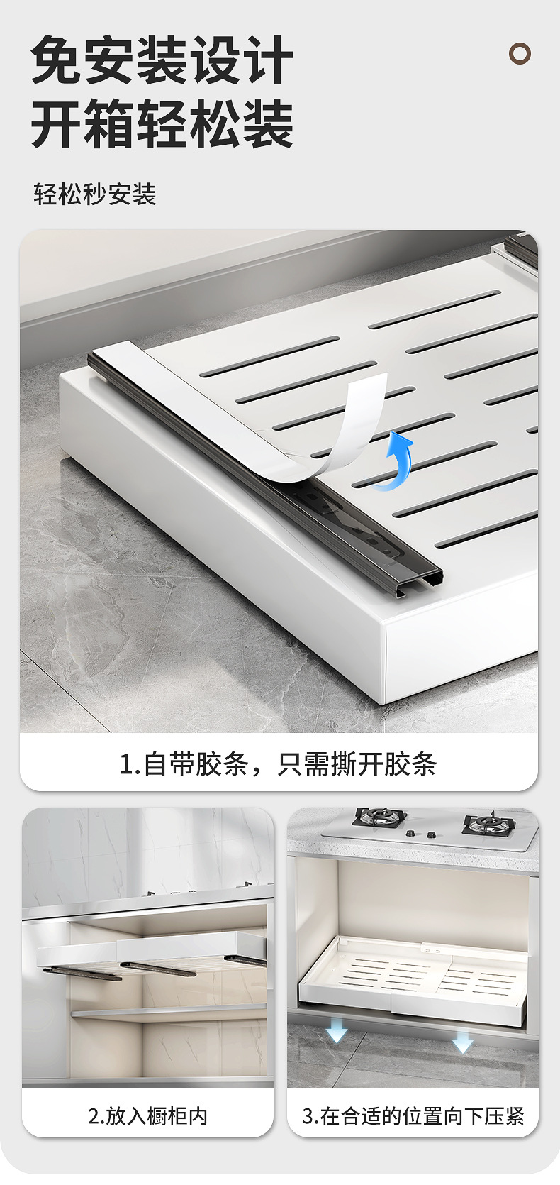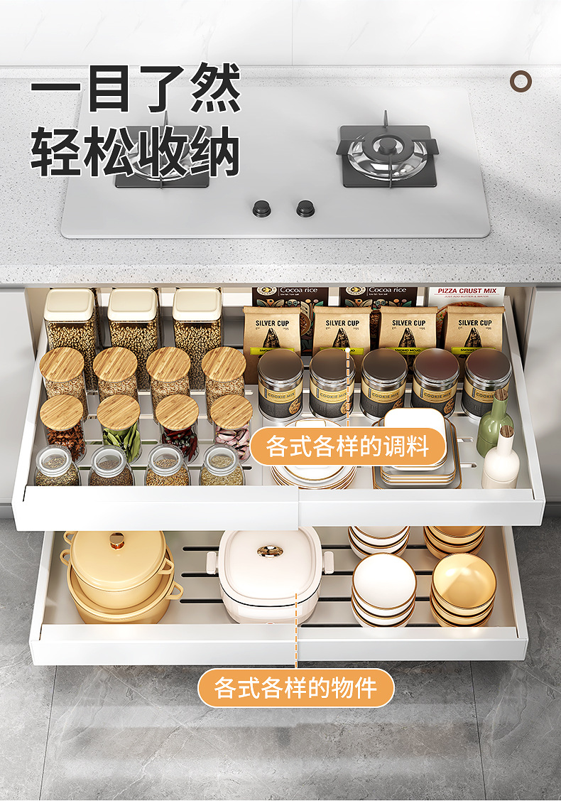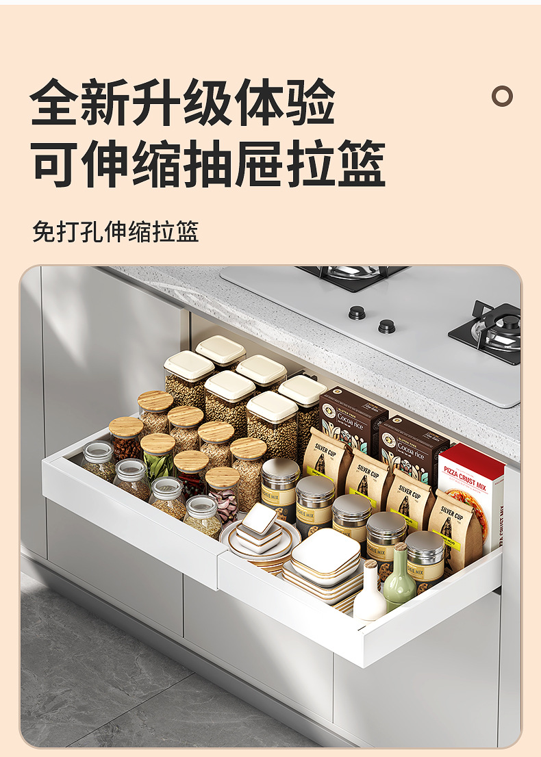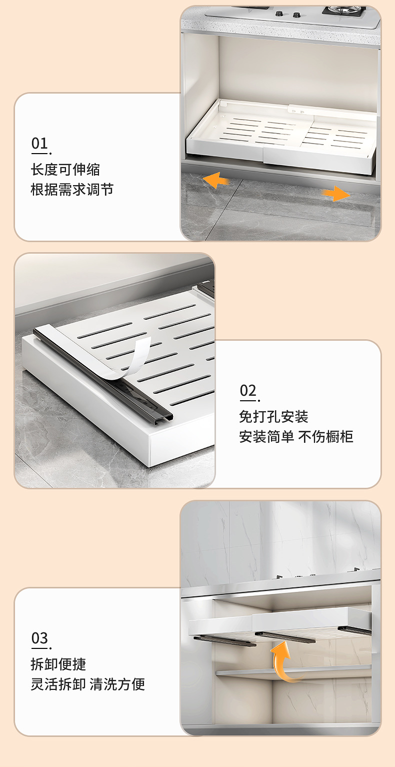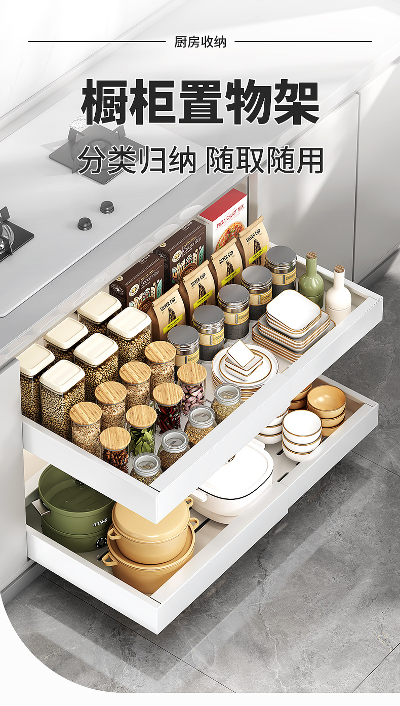 Выдвижная полка для хранения в шкафу без сверления для кастрюль и посуды, выдвижная корзина под раковину