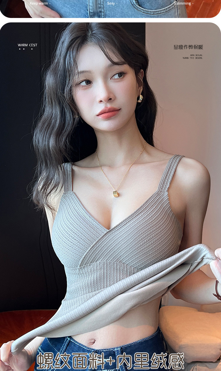 Теплый длинный жилет на осень и зиму с бархатной текстурой, с встроенной чашечкой, базовый топ с V-образным вырезом для женщин