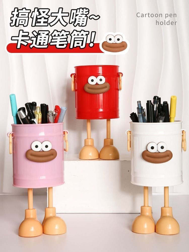 Подставка для ручек для студентов, офисная большая емкость, милая простая ретро-корзина, персонализированная подставка с мультяшным дизайном