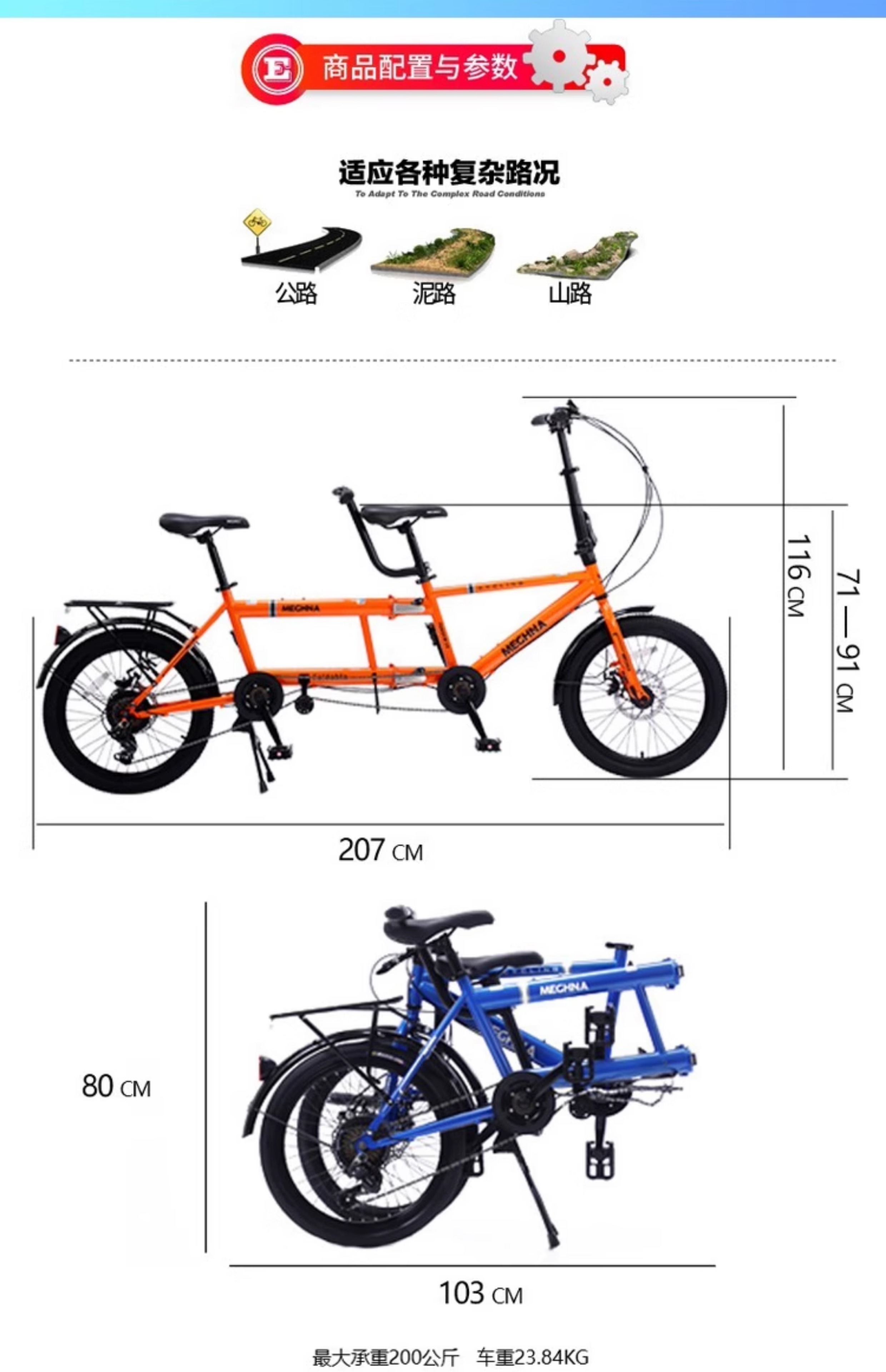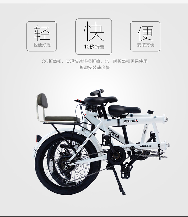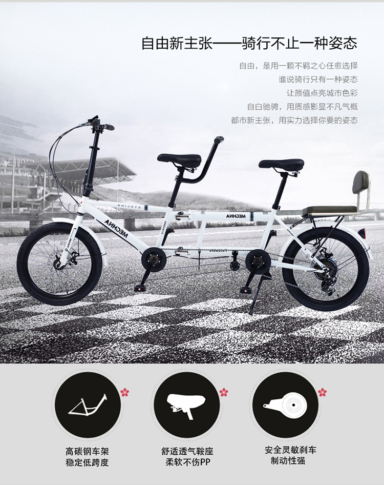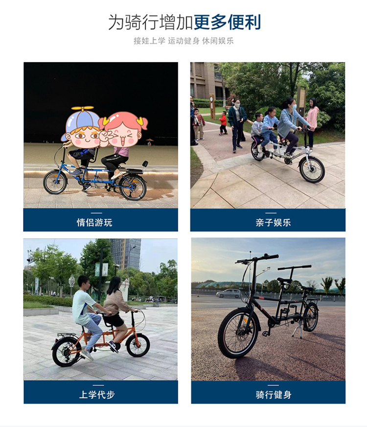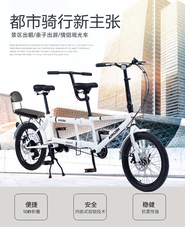 Складной двойной велосипед с переменной скоростью для родителей с ребенком, аренда для трех человек, поездка на двоих