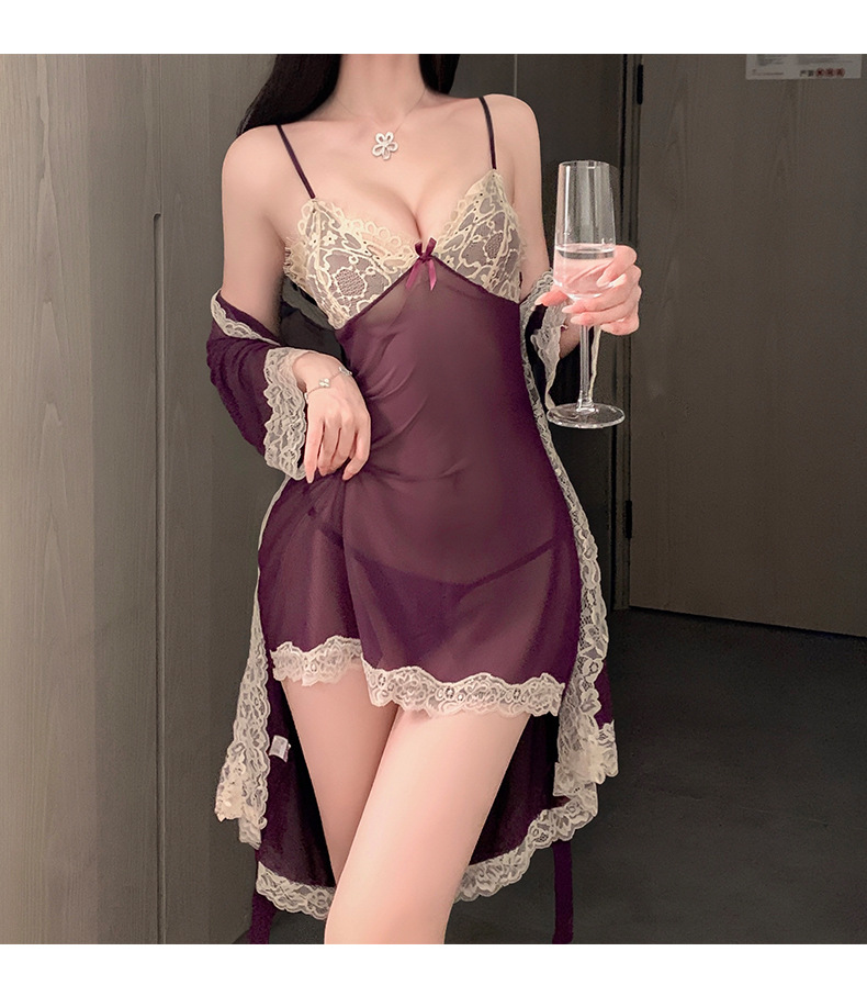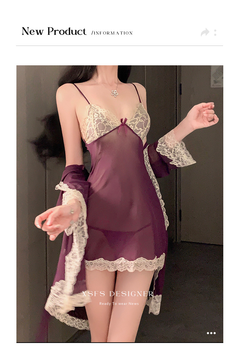 Индивидуальный комплект пижамы с кружевом и прозрачными интимными аксессуарами *Xishi
