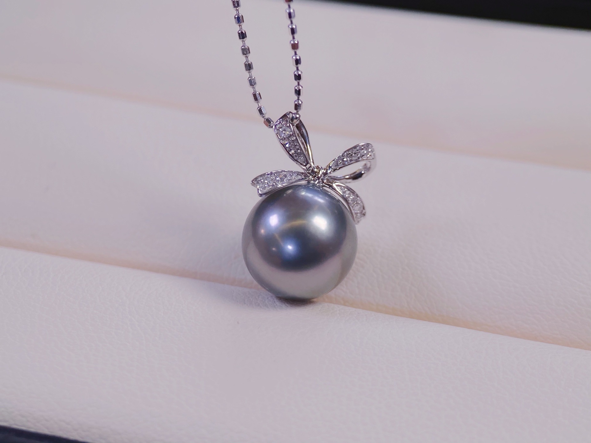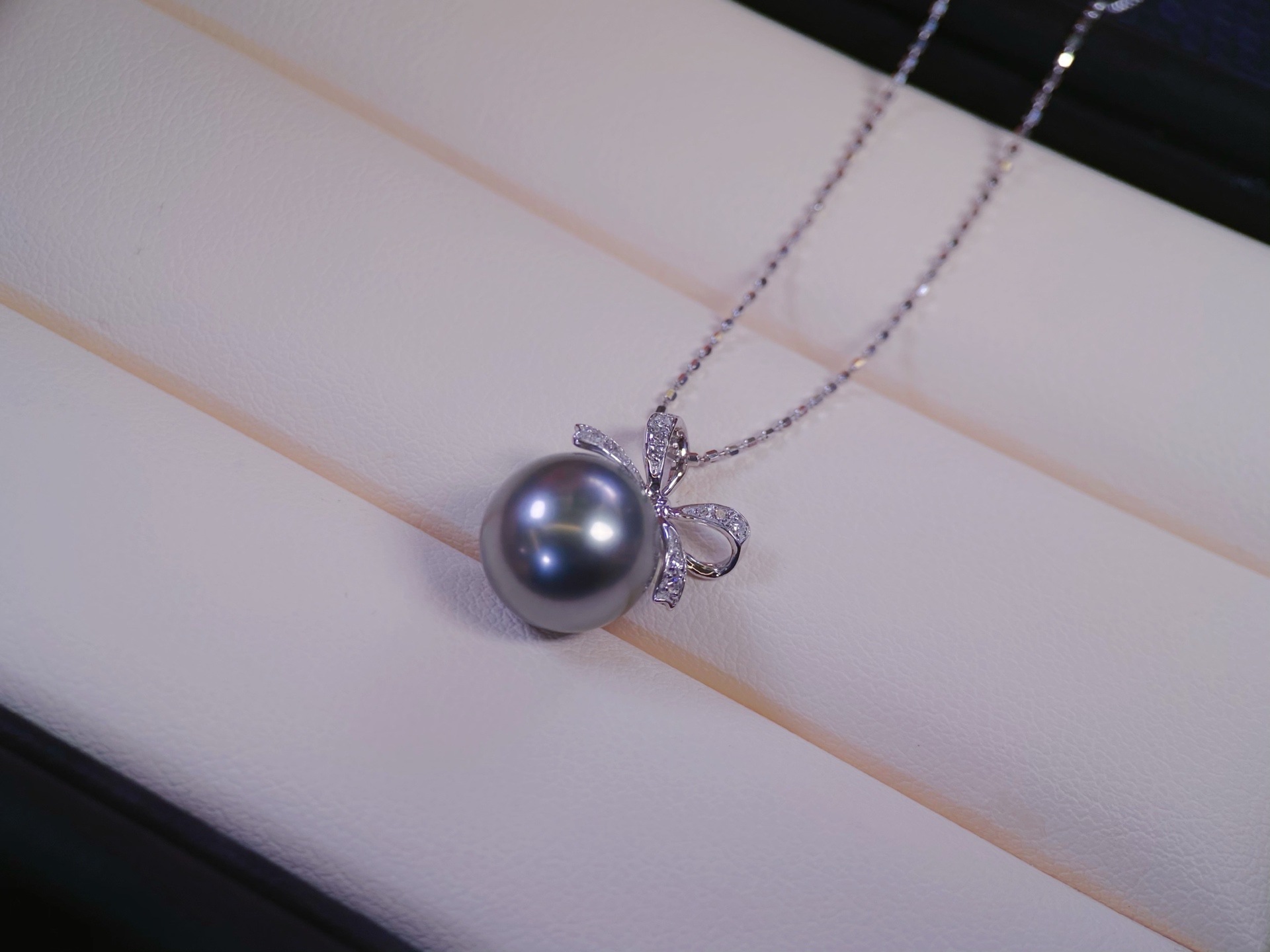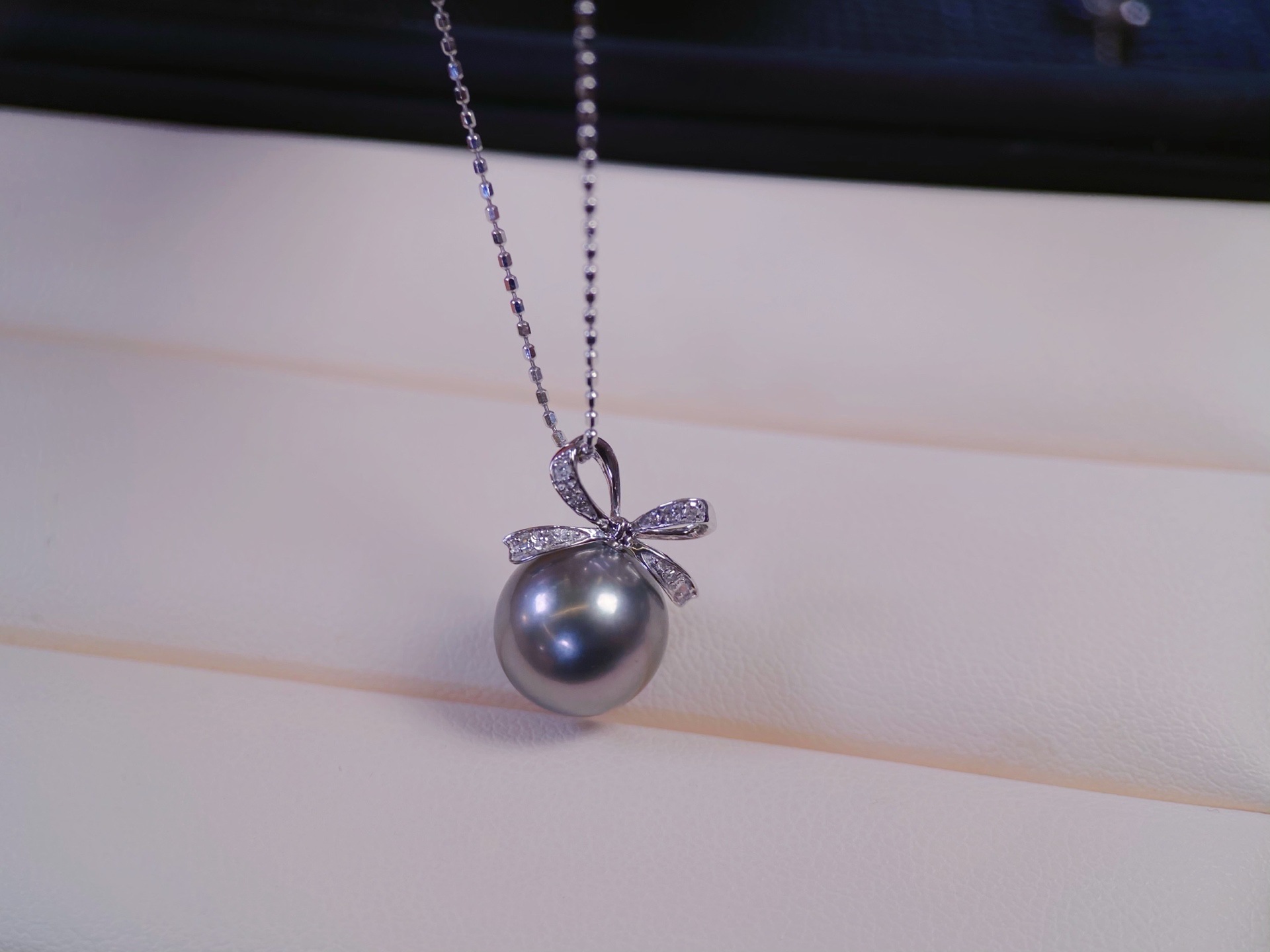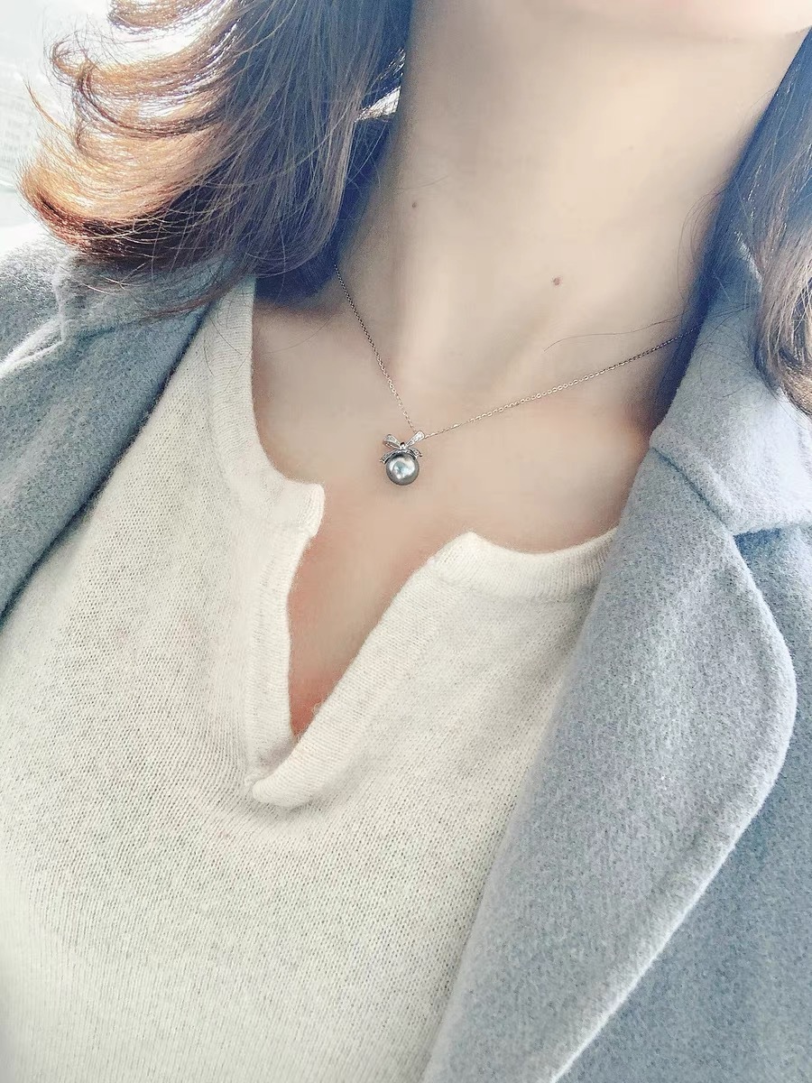 Подвеска с бриллиантами Pt900, инкрустированная бриллиантами D0.05/Ct, с жемчугом 9-10мм, без цепочки