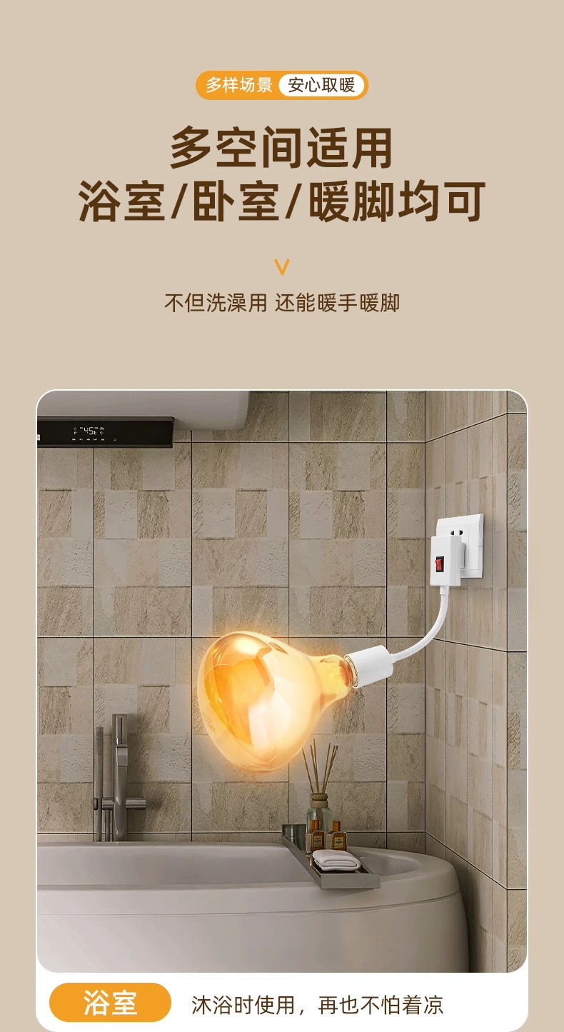 Портативный держатель лампы для обогревателя ванной с выключателем, медный винт, E27, 275 Вт