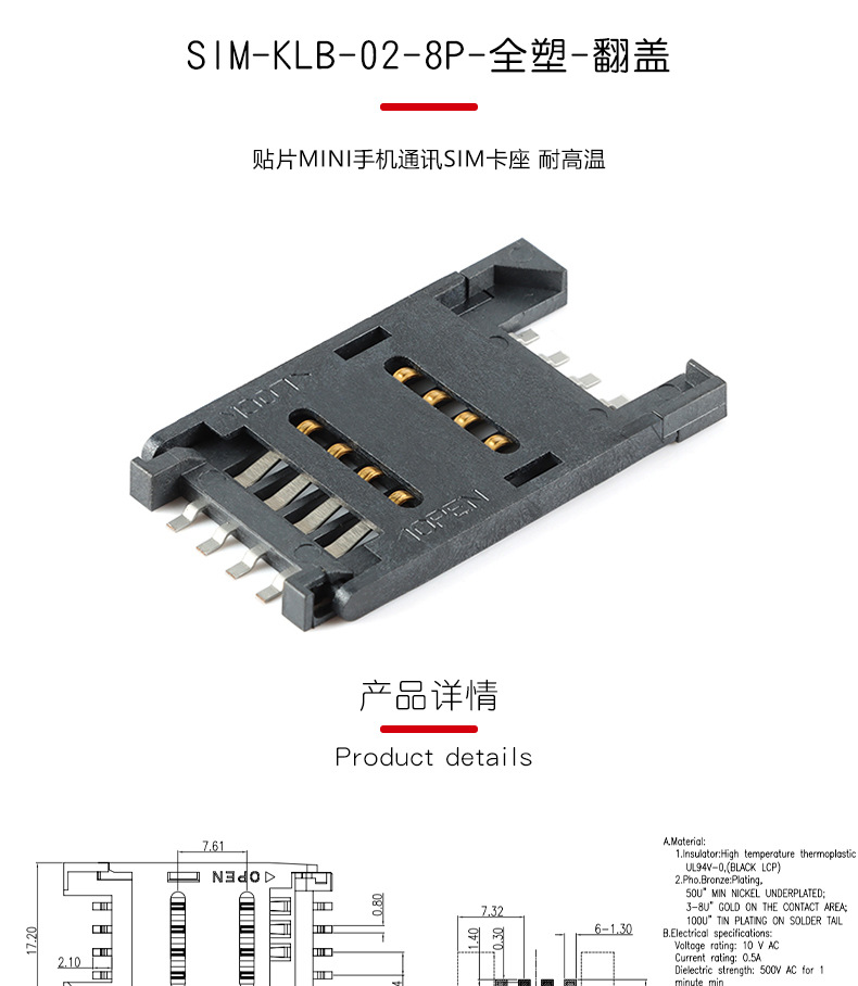 Sim-Klb-02-8P-Всё пластиковый-складной патч мини мобильный телефонный держатель SIM-карты с высокой температурной стойкостью