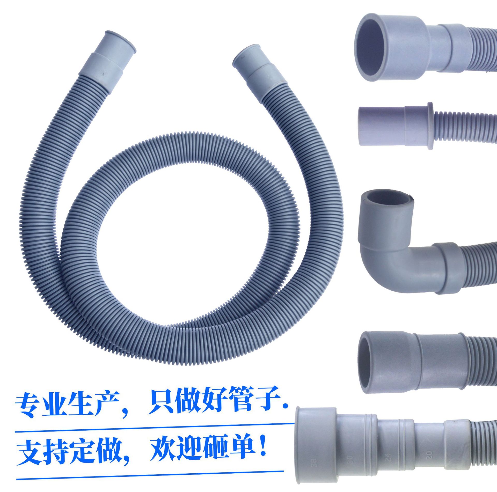 滚筒洗衣机排水管,长度有多个规格可选,配件有多种组合,配件另选。可以预定将配件包装入袋,0.8米及更长的规格,都是有单独透明袋,中性包装,