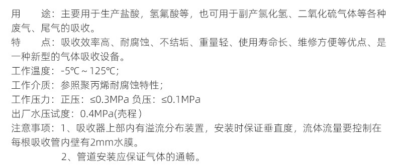Горизонтальный поглотитель ПП пленочный поглотитель Индивидуальный графитовый модифицированный полипропиленовый трубчатый поглотитель