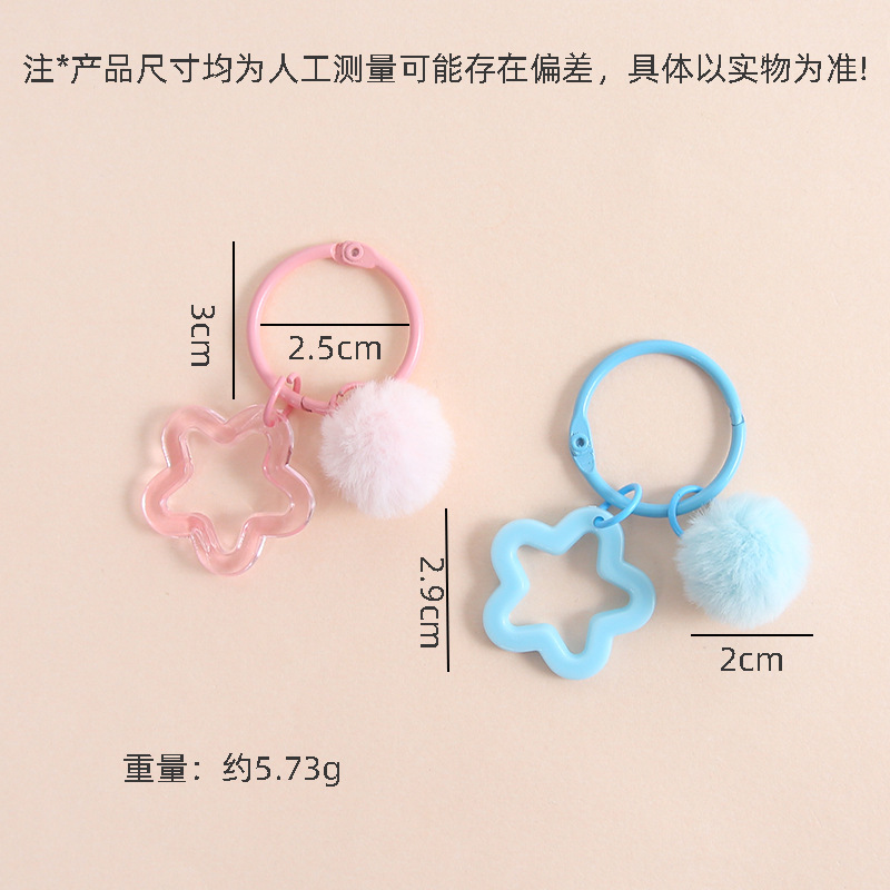 Свежий и милый цветной пятиконечный звездный меховой шарик 3 см кольцо для ключей DIY ручной работы подвеска для сумки оптом