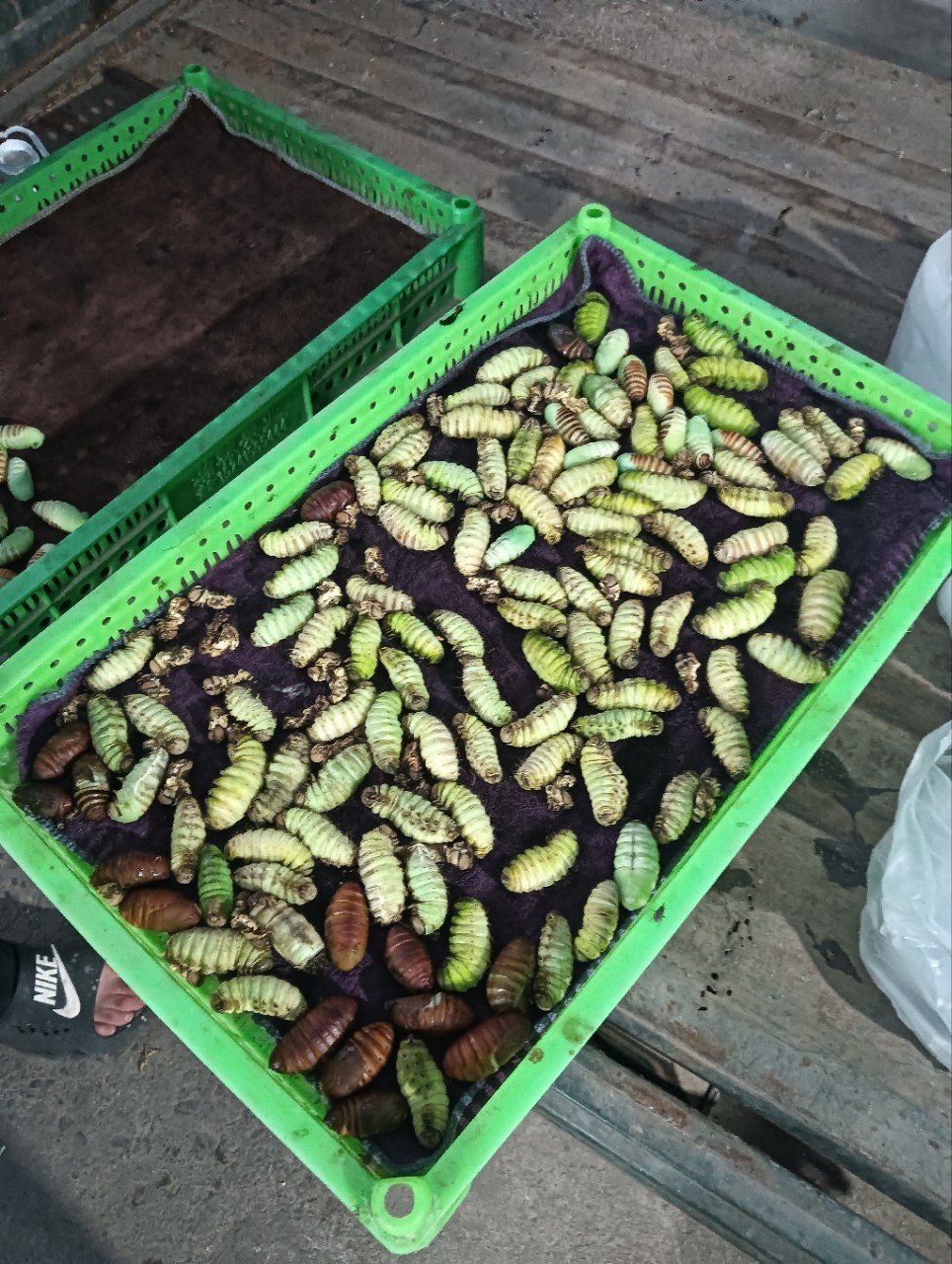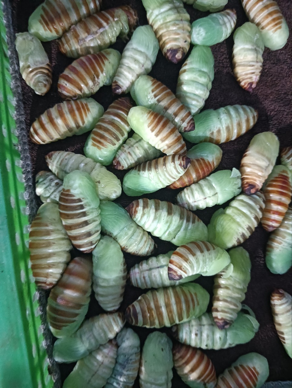 - “神仙”蛹:就是蚕在茧壳里变化为蛹的过程,只有几分钟时间,很难掌控这个度,当地蚕民习惯叫它“神仙蛹”,也叫“仙儿”。一斤约55-60个左右,长度35-45mm。适合煎、炒、烹、炸、烤等各种烹调做法,它的优点就是没有皮,全是鲜嫩的小鲜肉,是酒店不可获缺的食材,也是普通家庭的美味佳肴。