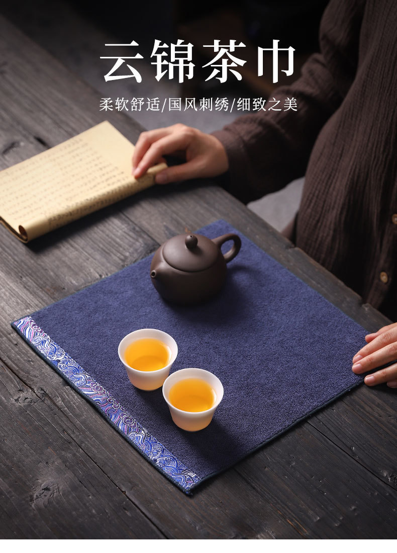 Чайное полотенце из вышитого хлопка и льна, японская и китайская чайная церемония, абсорбирующее, толстое, квадратное, аксессуары для стола