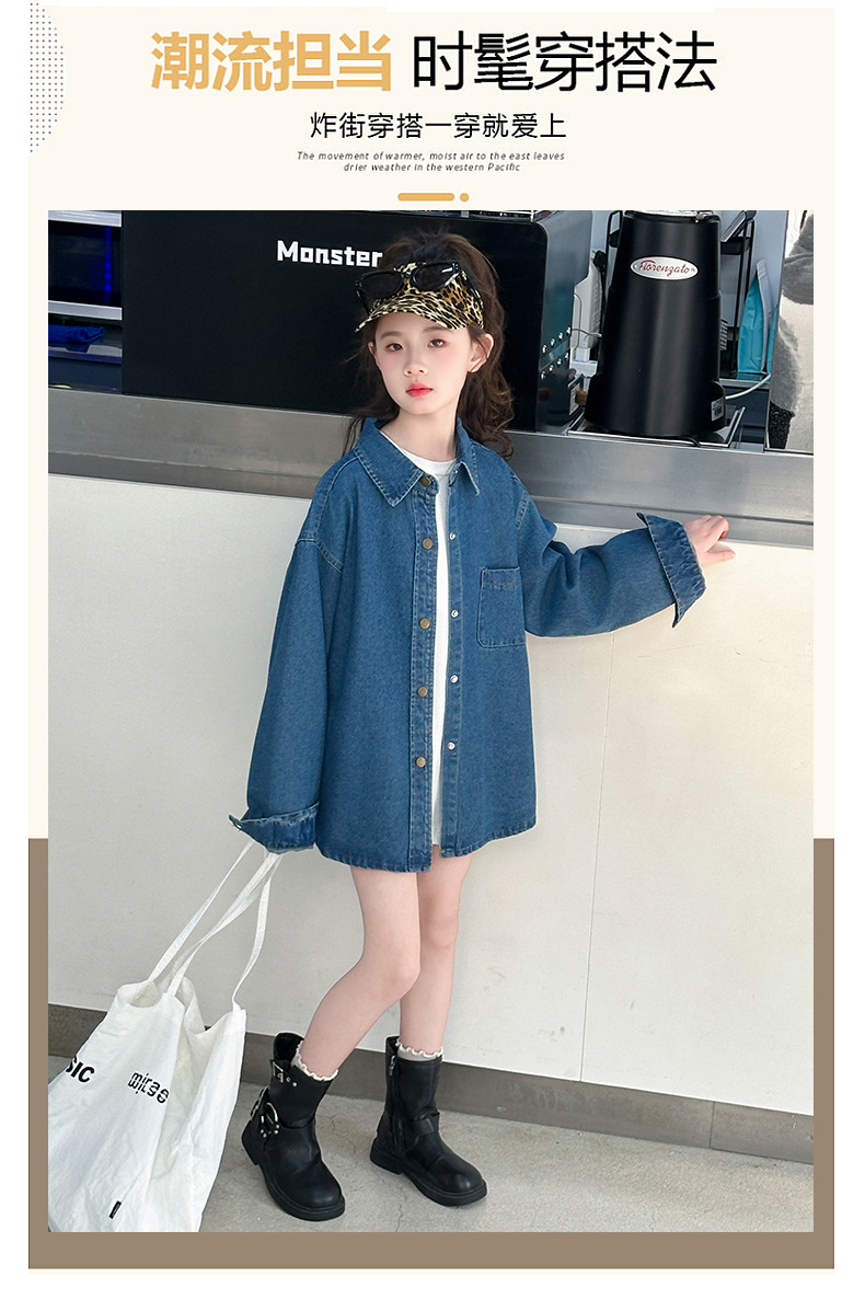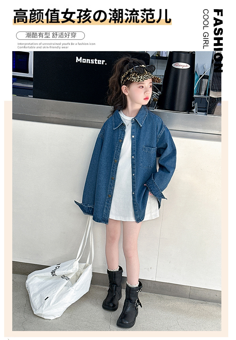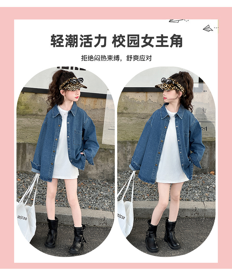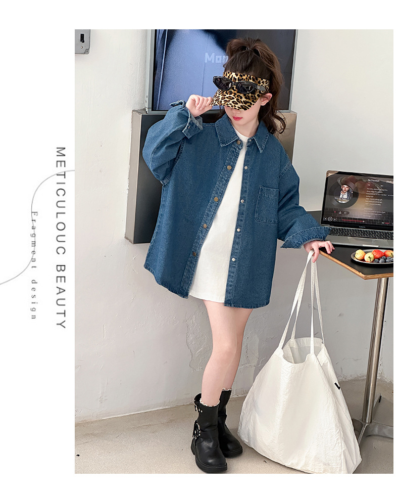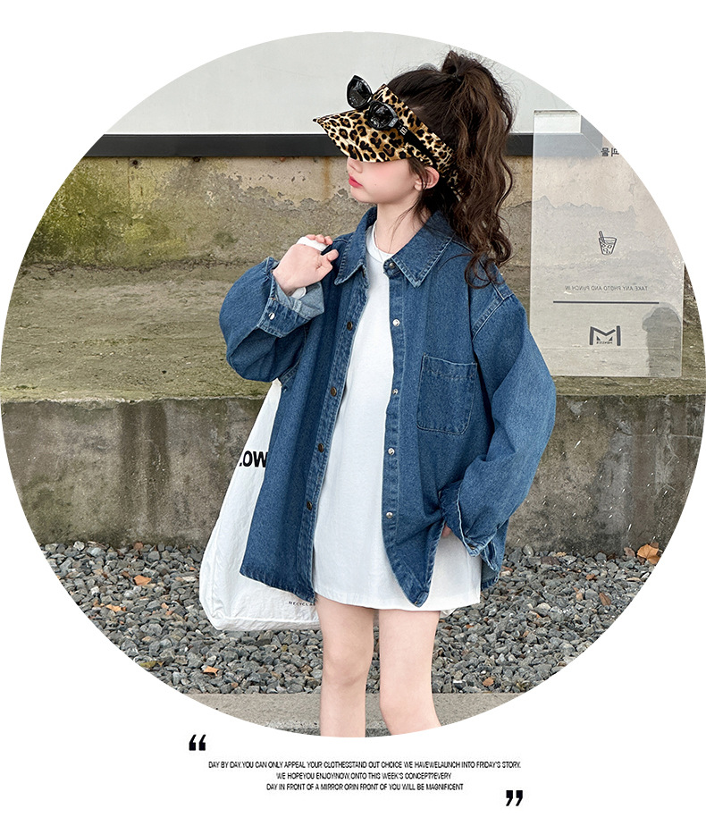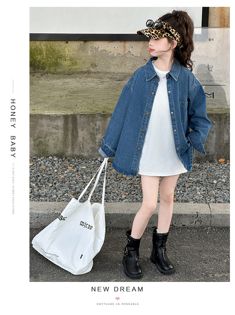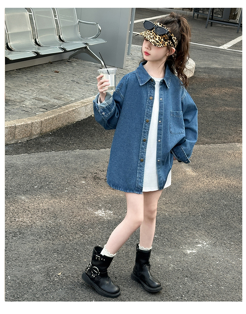 Джинсовая рубашка для девочек, новая осенняя модель 2025 года для старших девочек, детская белая базовая рубашка с круглым вырезом