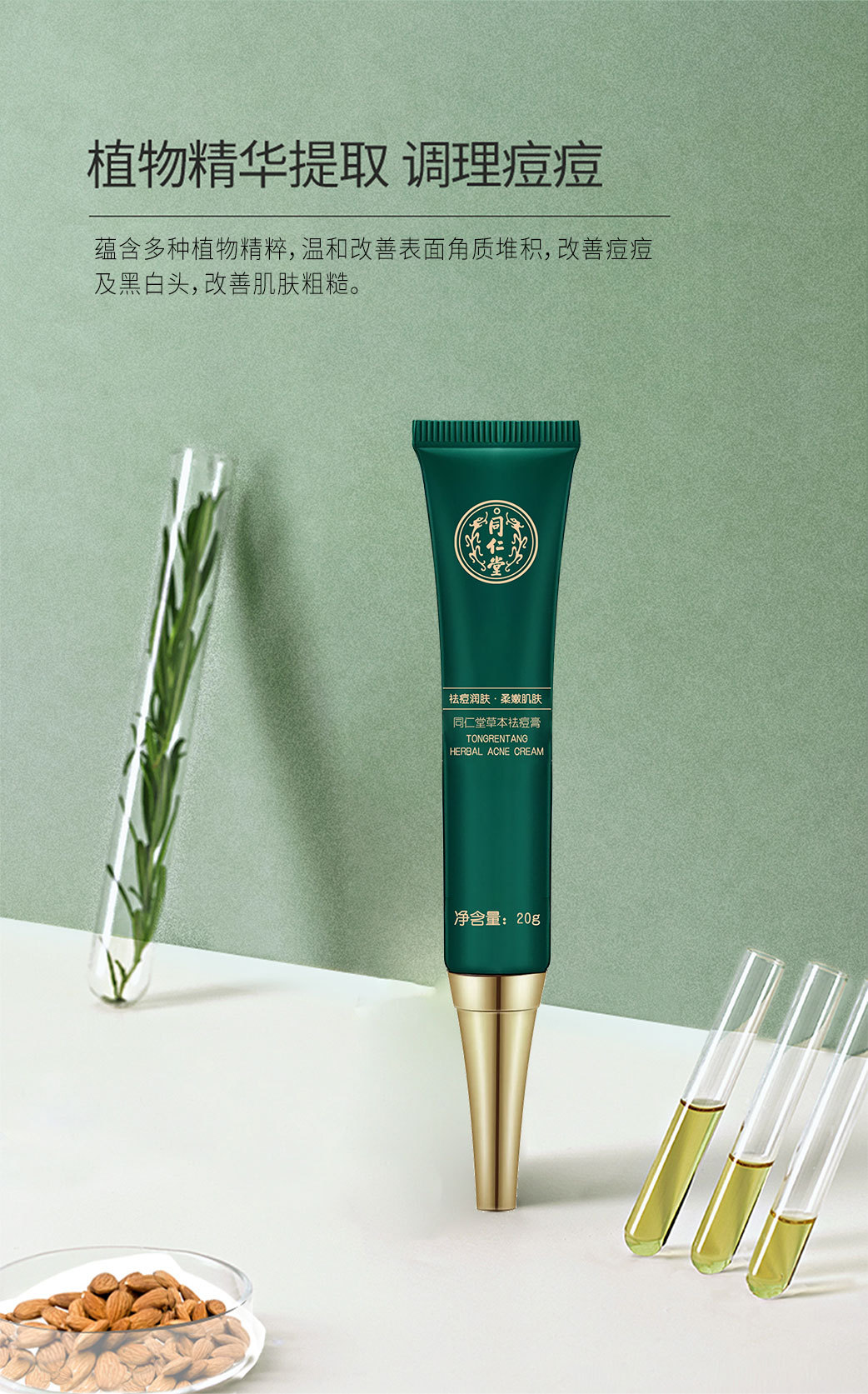 Травяной крем против акне Beijing Tongrentang, улучшает кожу с акне, экстракт растений, оптовая доставка