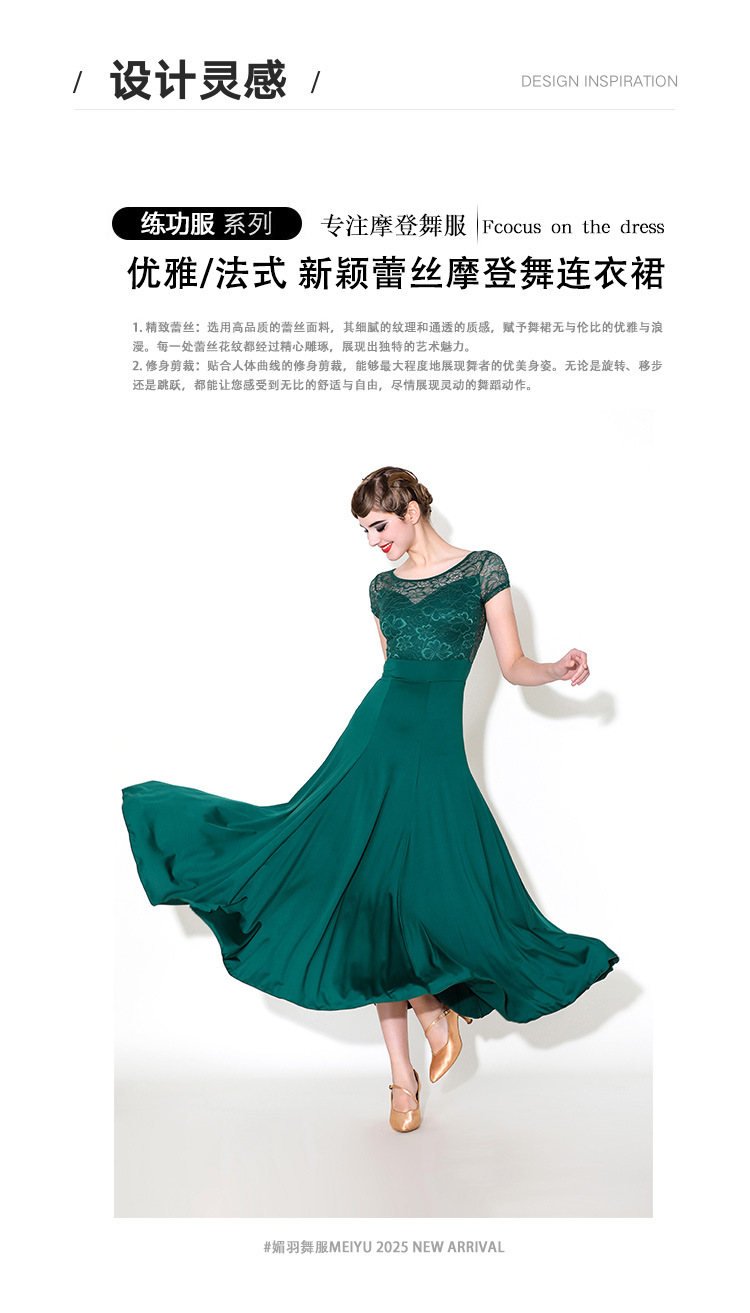 Meiyu взрослое новое современное танцевальное платье с коротким рукавом My935 кружевная одежда для бальных танцев