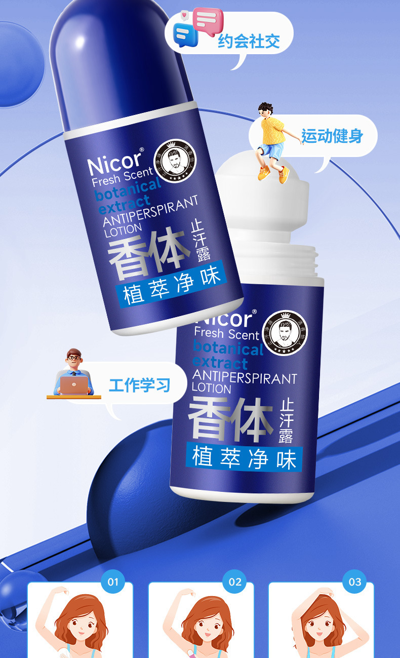 男士走珠香体露腋下清香止汗抑汗去异味香体露持久留香清爽爽身型