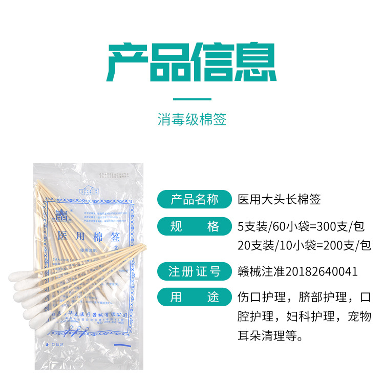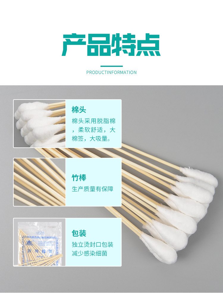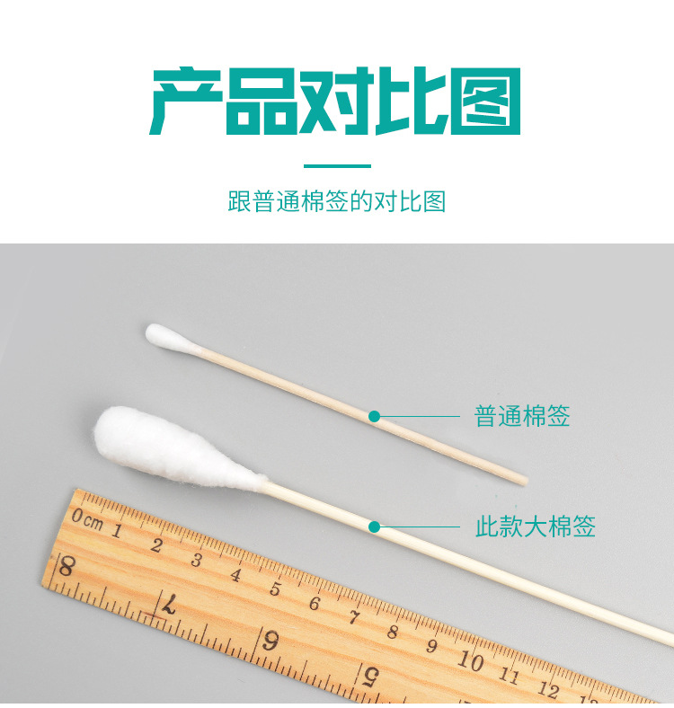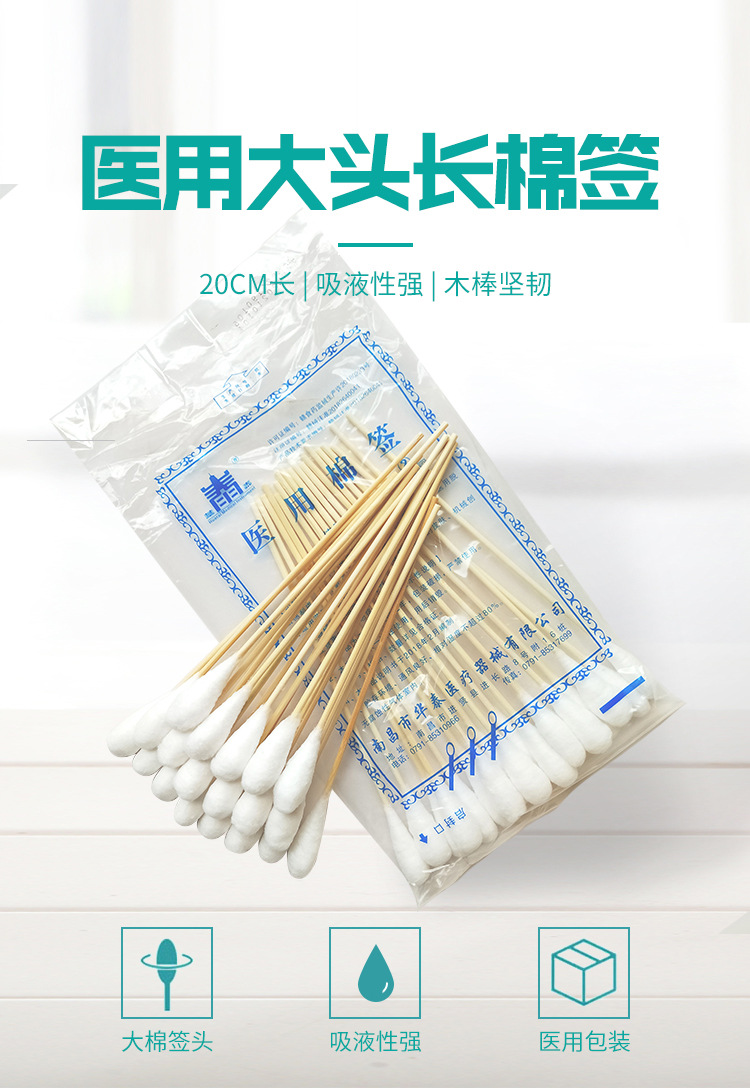 Медицинские стерильные ватные палочки с большой головкой для гинекологического осмотра, дезинфекции ран, одноразовые 20 см 20 штук в упаковке
