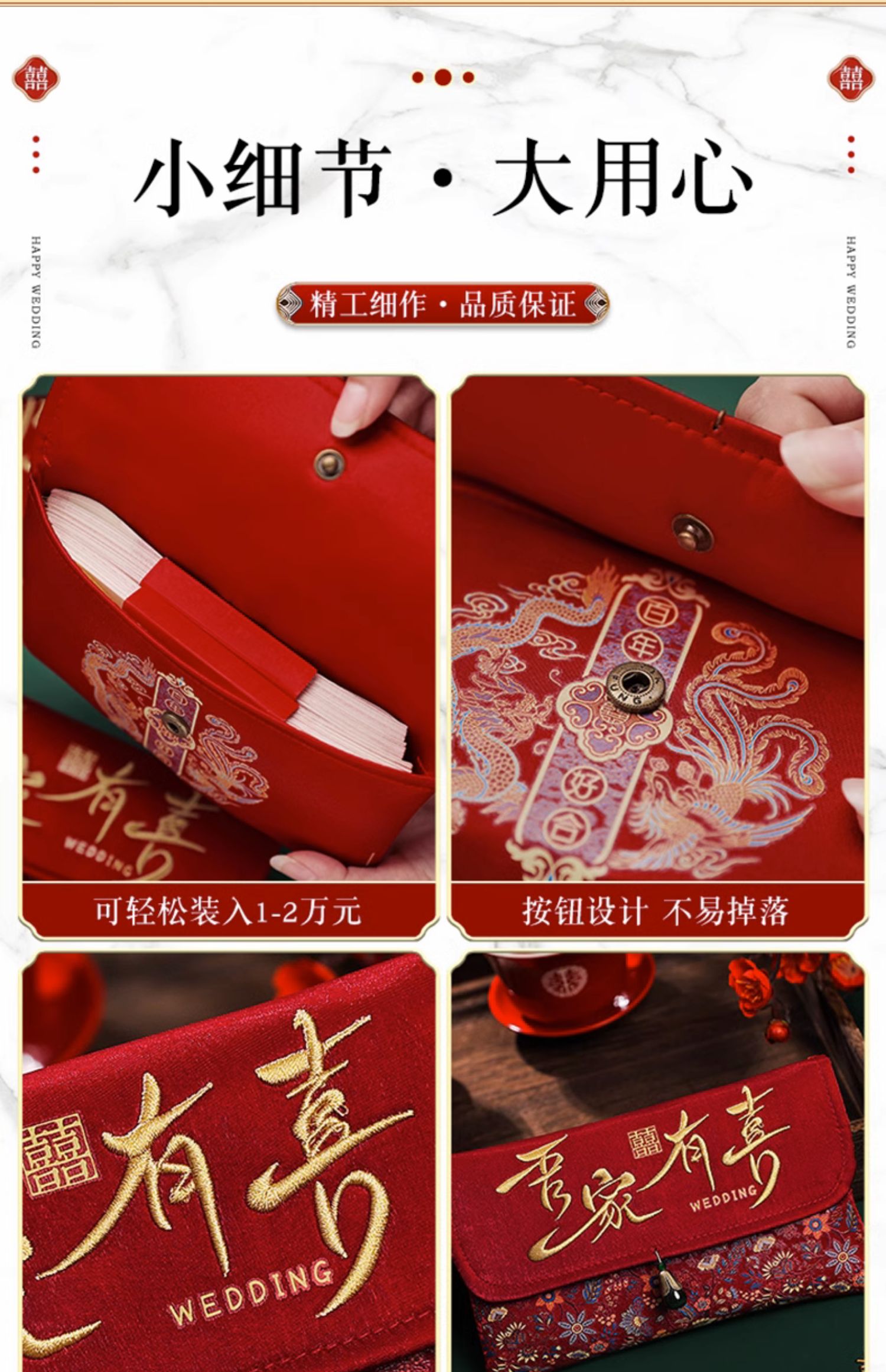 Красный конверт для свадьбы 2025, новый красный конверт, свадебная чайная церемония, пара больших свадебных сумок