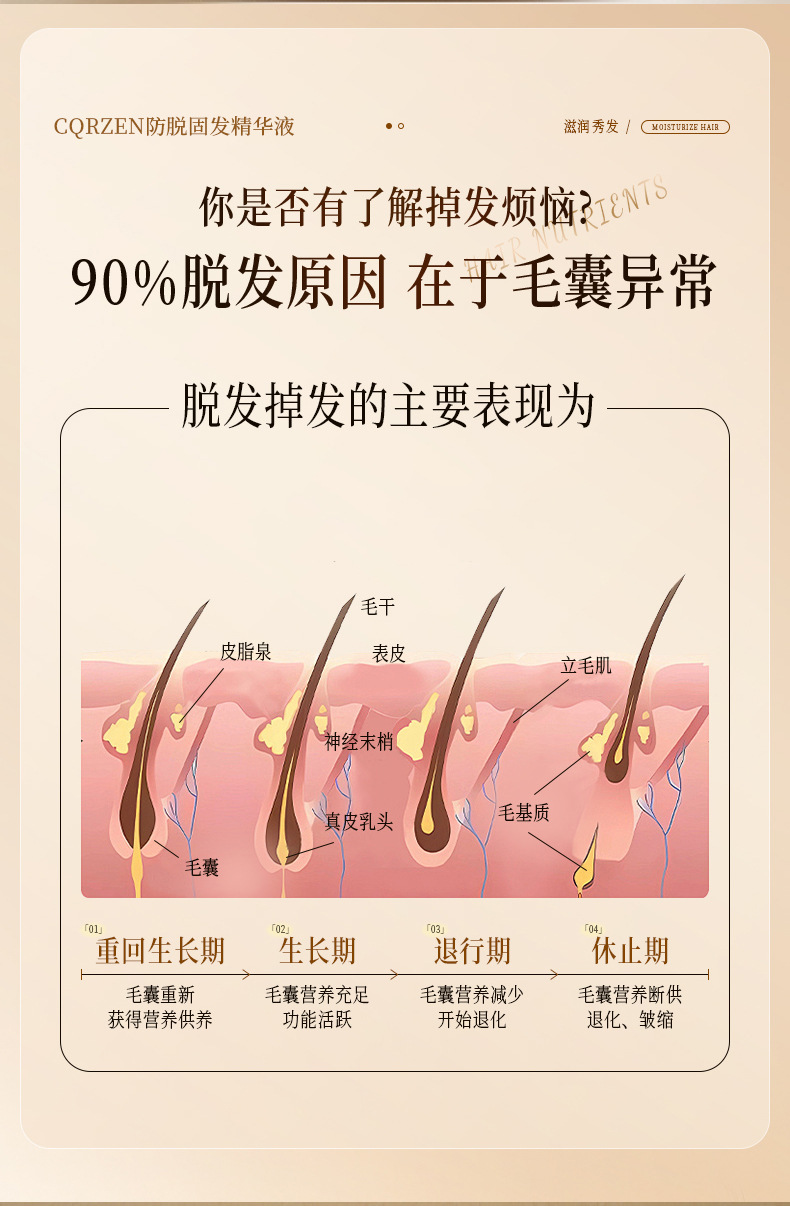 Популярная жидкость против выпадения волос Douyin, травяная эссенция для питания и фиксации волос
