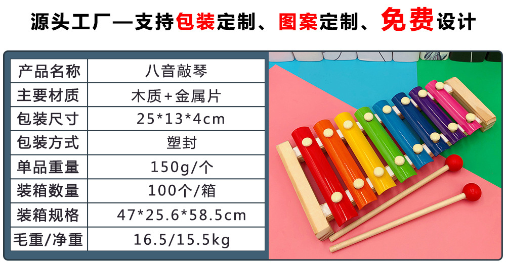 Восьмитональный ксилофон, музыкальная игрушка для детей, орфовый ударный инструмент, образовательная музыка, Монтессори
