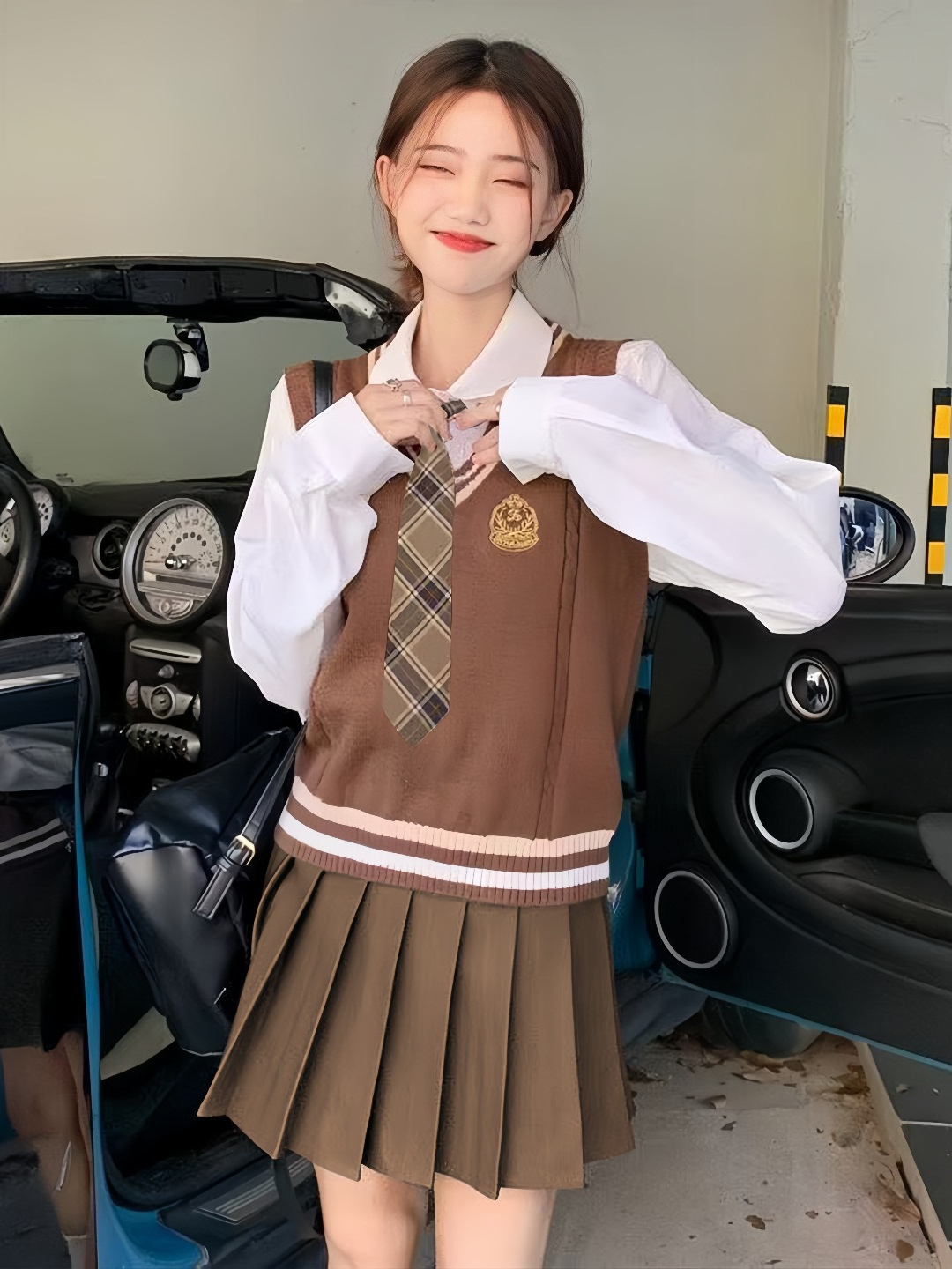 Рубашка в колледжском стиле с вязаным жилетом для женщин, униформа для студентов, платье для фото в удостоверении личности