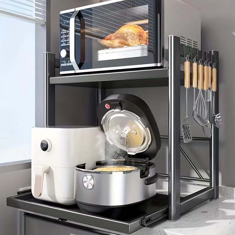 Индивидуальная выдвижная полка для микроволновой печи, двухуровневая полка для рисоварки на столешнице