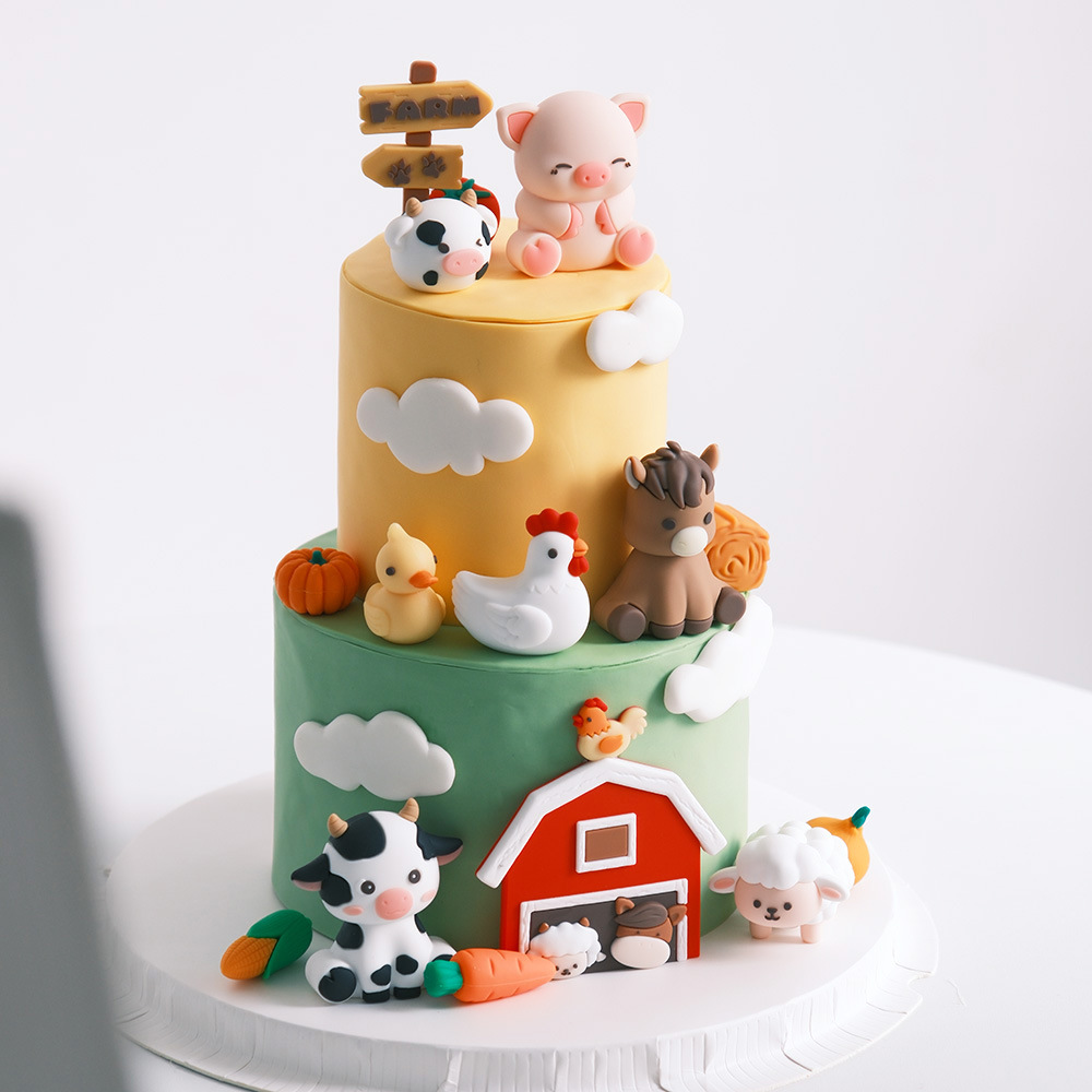 Декорации для торта из серии Интернет-знаменитостей: поросенок, пони, ягненок, цыпленок, утка, украшения с сеном, куклы для стола