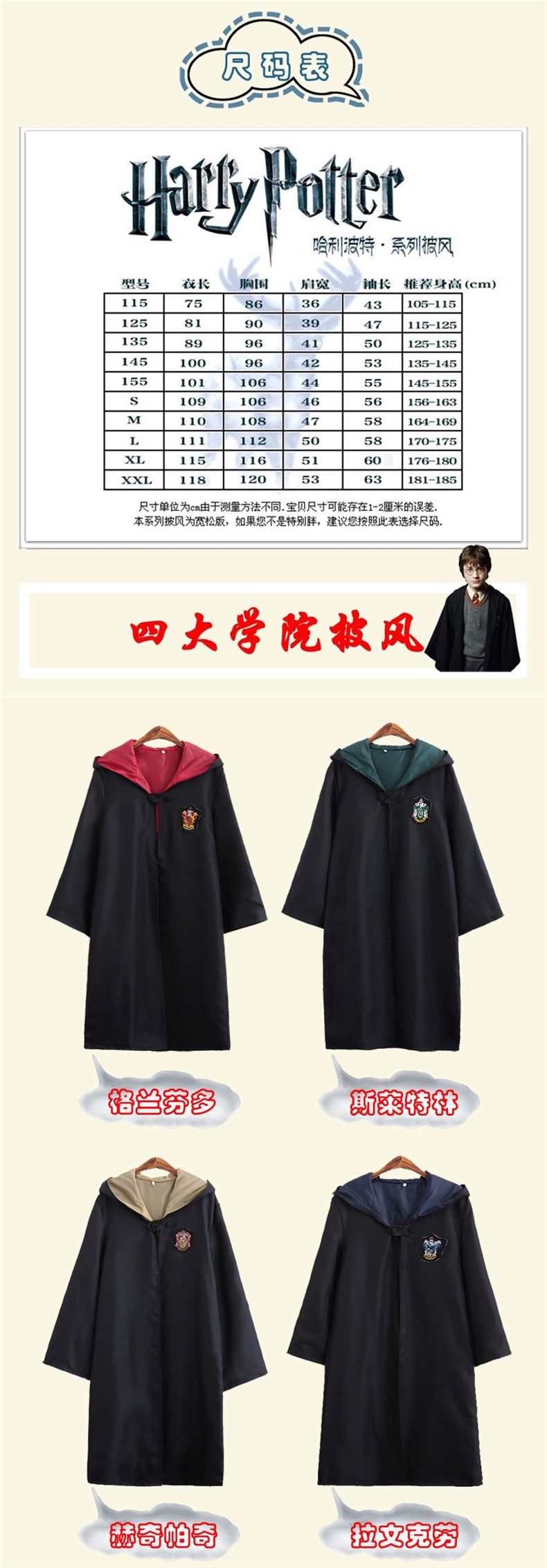 ![]() | S size: 155-165cm | Slytherin (cloak + tie) | ¥50.4 / ≈ 597 ₽ | 200 | 6063866739326 | |