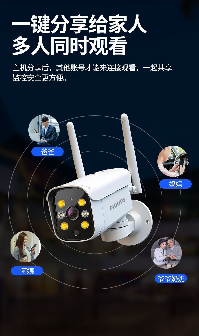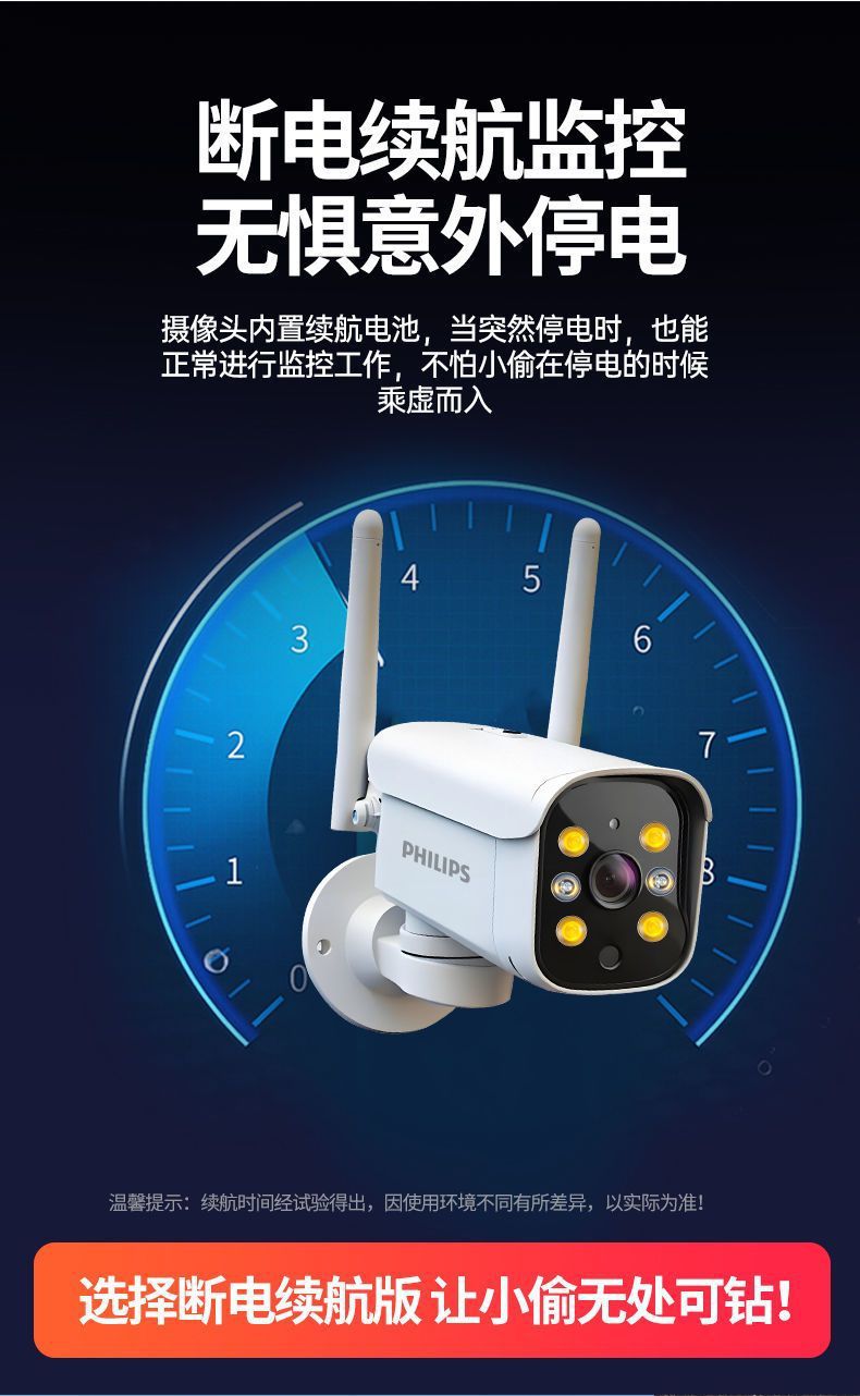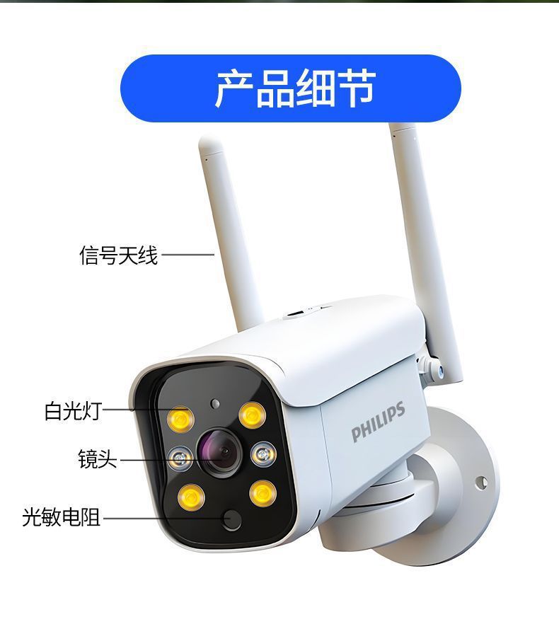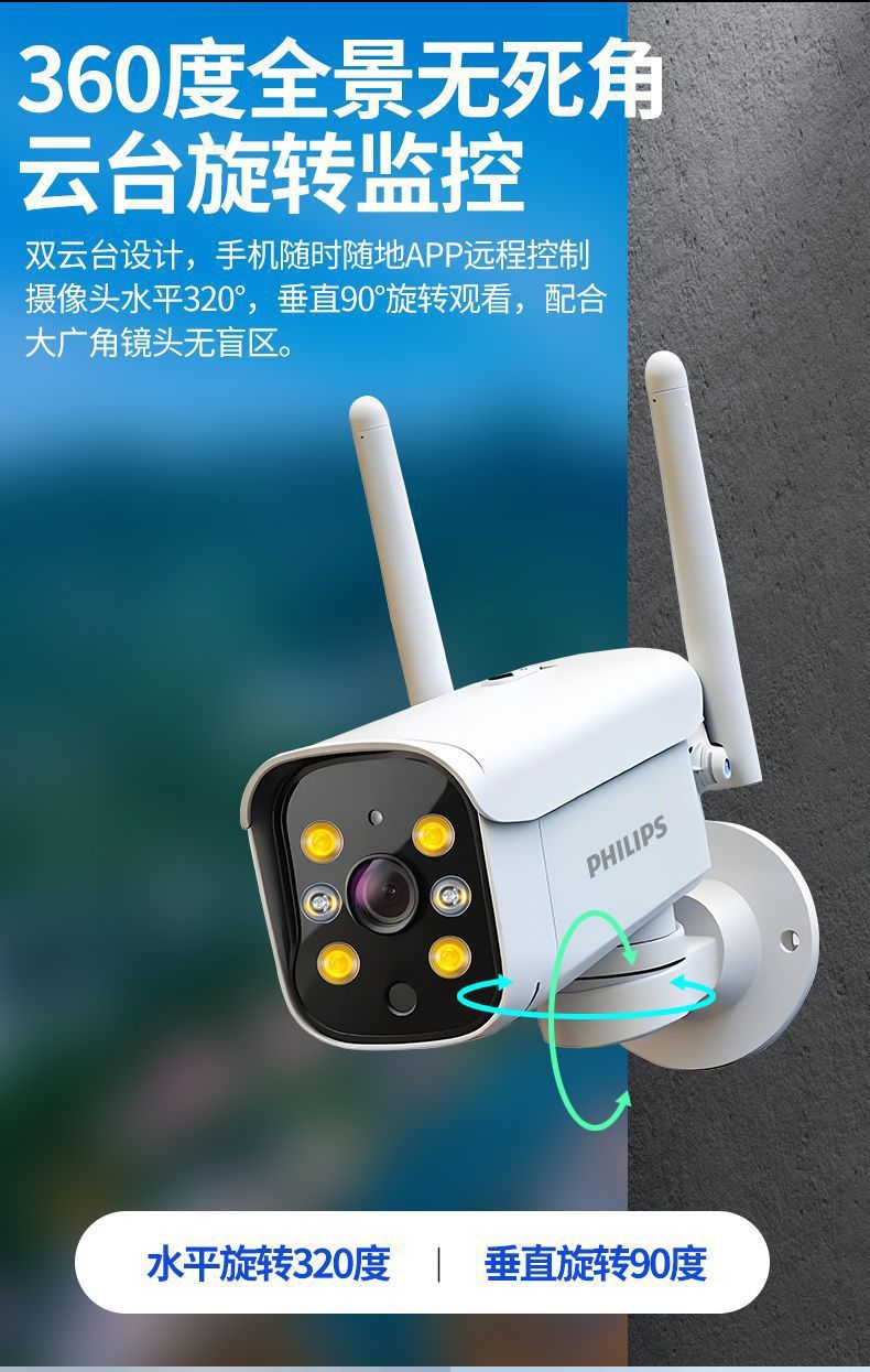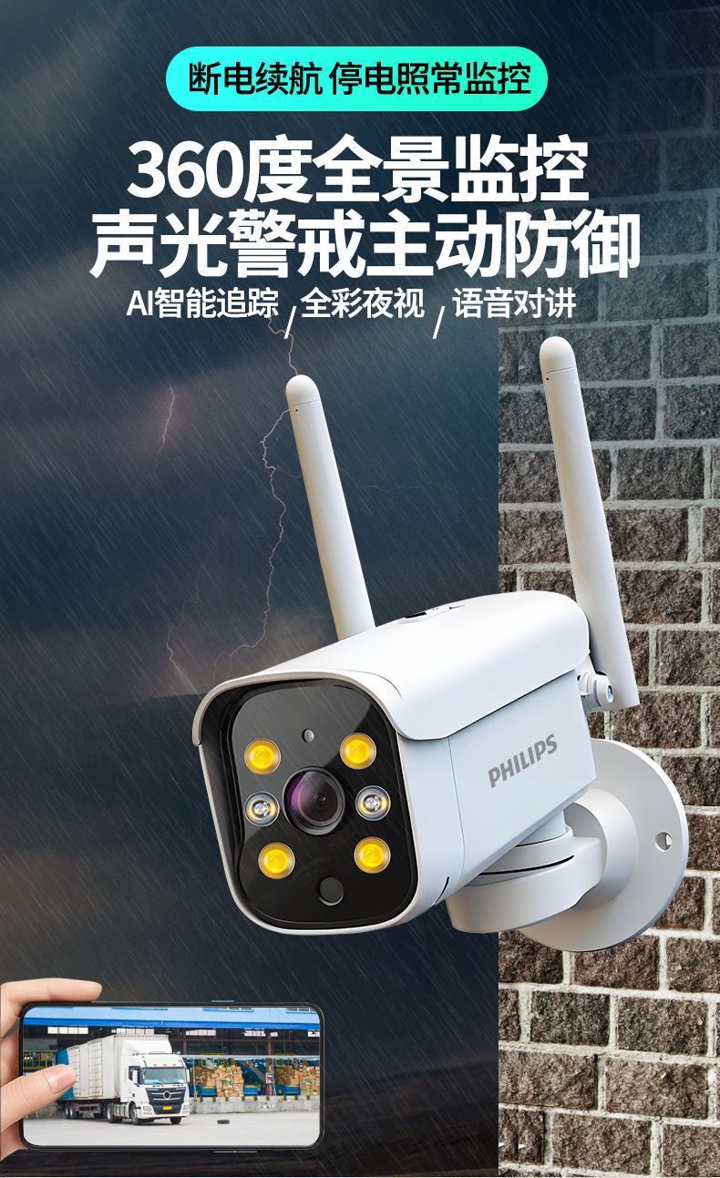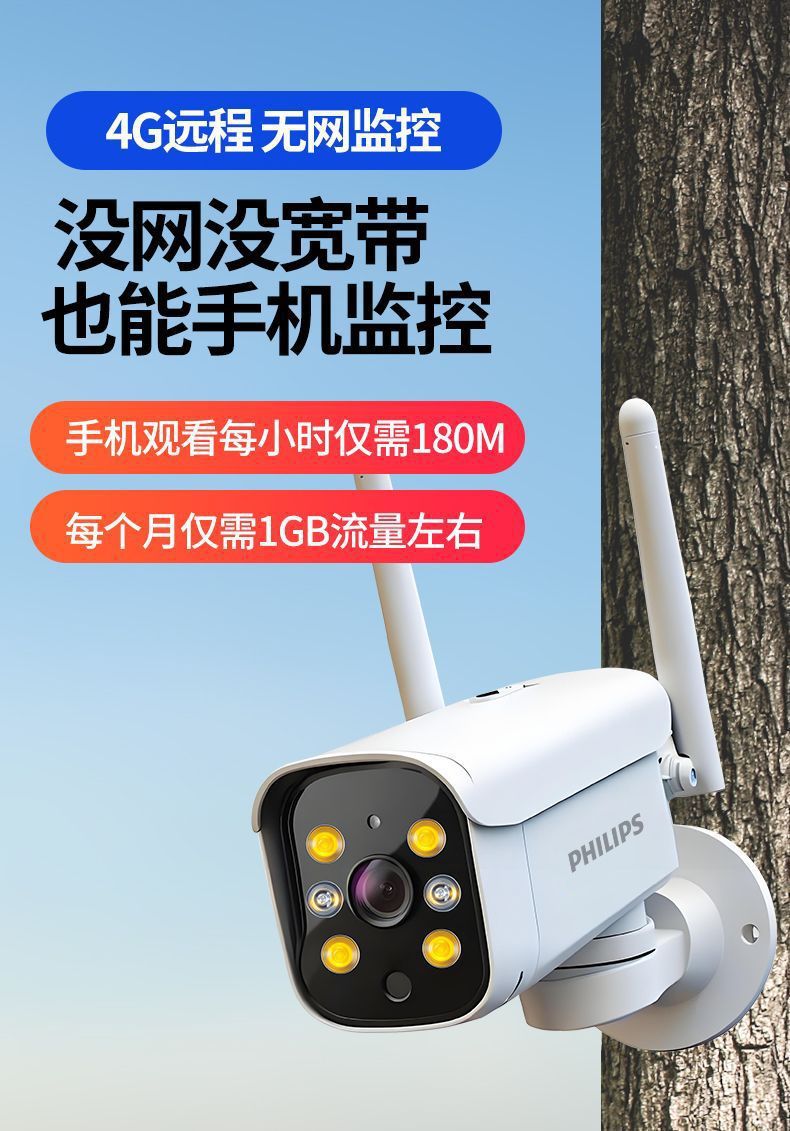 Philips Hd 4g беспроводное видеонаблюдение, полноцветное ночное видение, широкоугольная, водонепроницаемая, 360 градусов без мёртвых зон, удалённый доступ через мобильный телефон