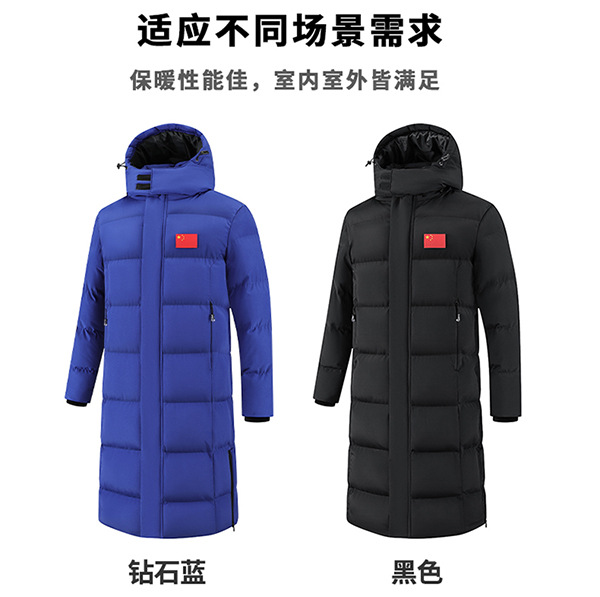 Утепленная куртка для студентов национальной команды, тренировочный комплект, длинная куртка до колен, зимняя, с флисовой подкладкой, холодозащитная для бега