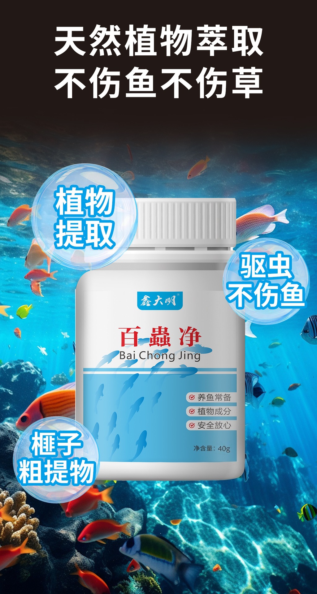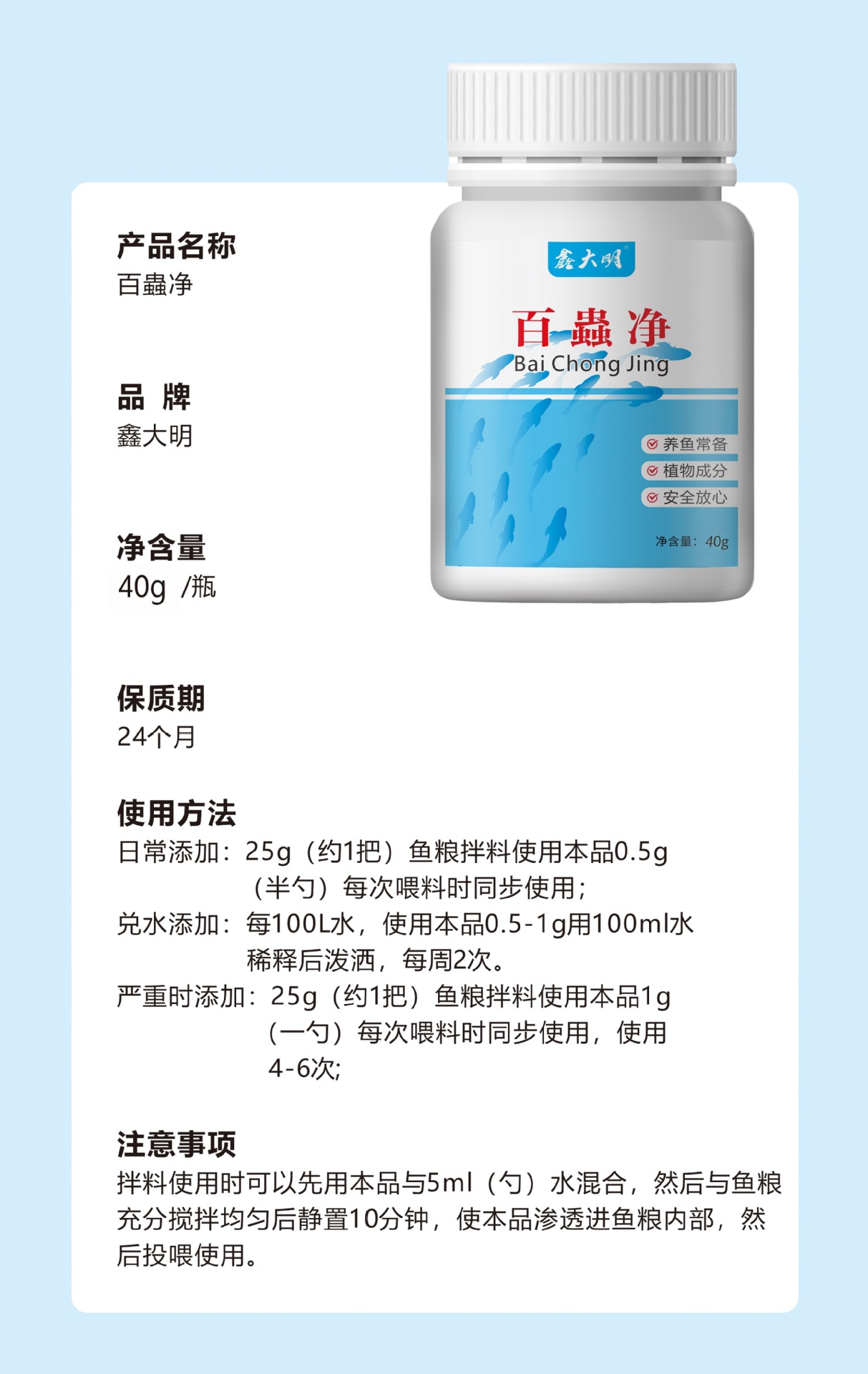 Порошок инсектицида для аквакультуры, используется против четырех основных видов рыб: рыбные вши, якорные черви, кольчатые черви и планарии