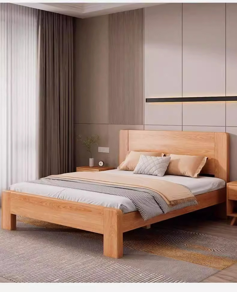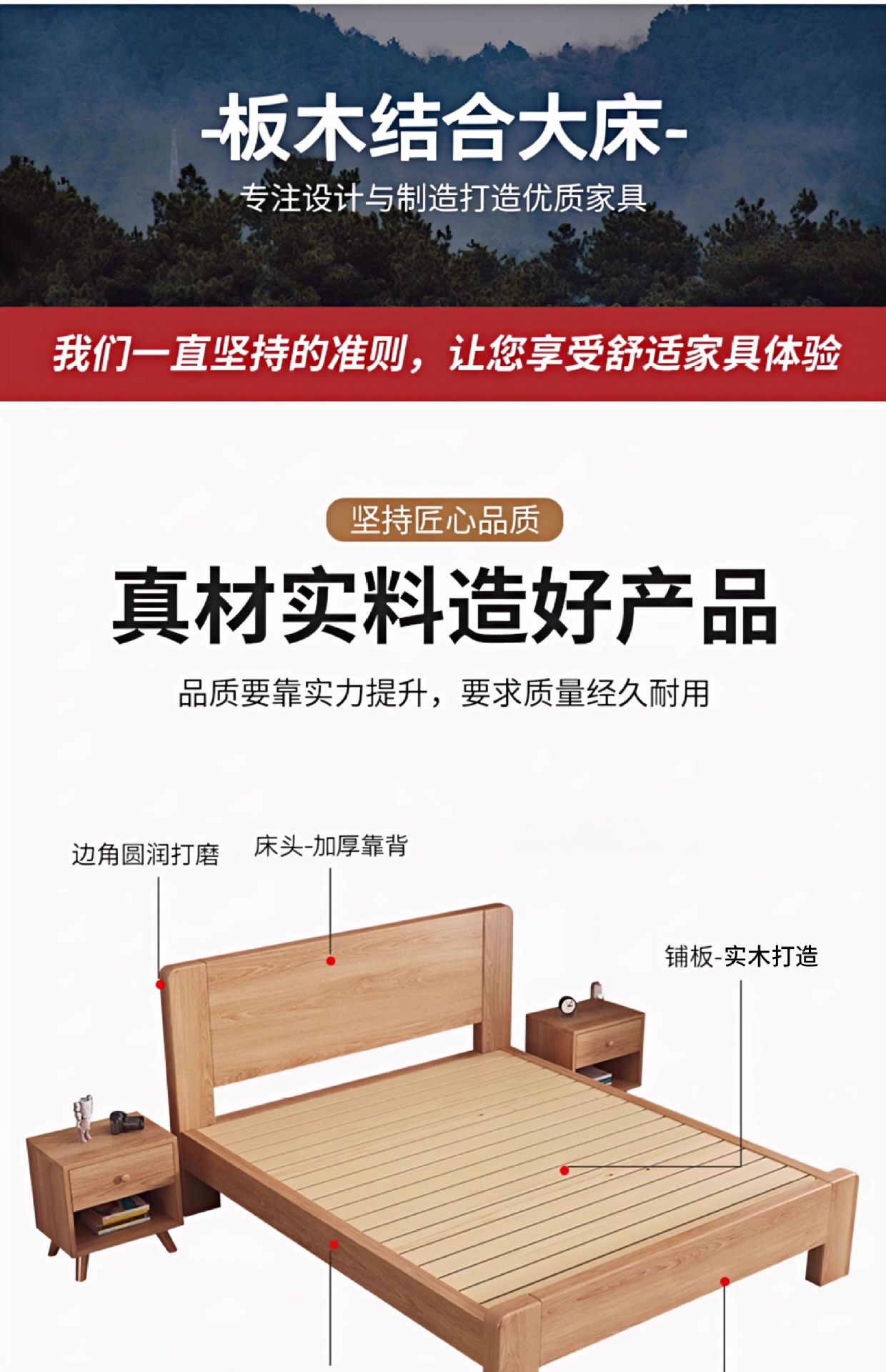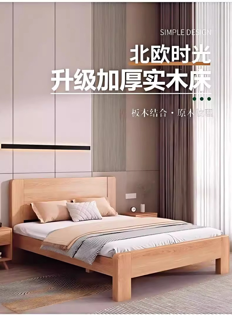 Кровать из массива дерева 1.5м, современная простая двуспальная кровать для дома, 1.8м, односпальная кровать для аренды 1.2м, утолщенная