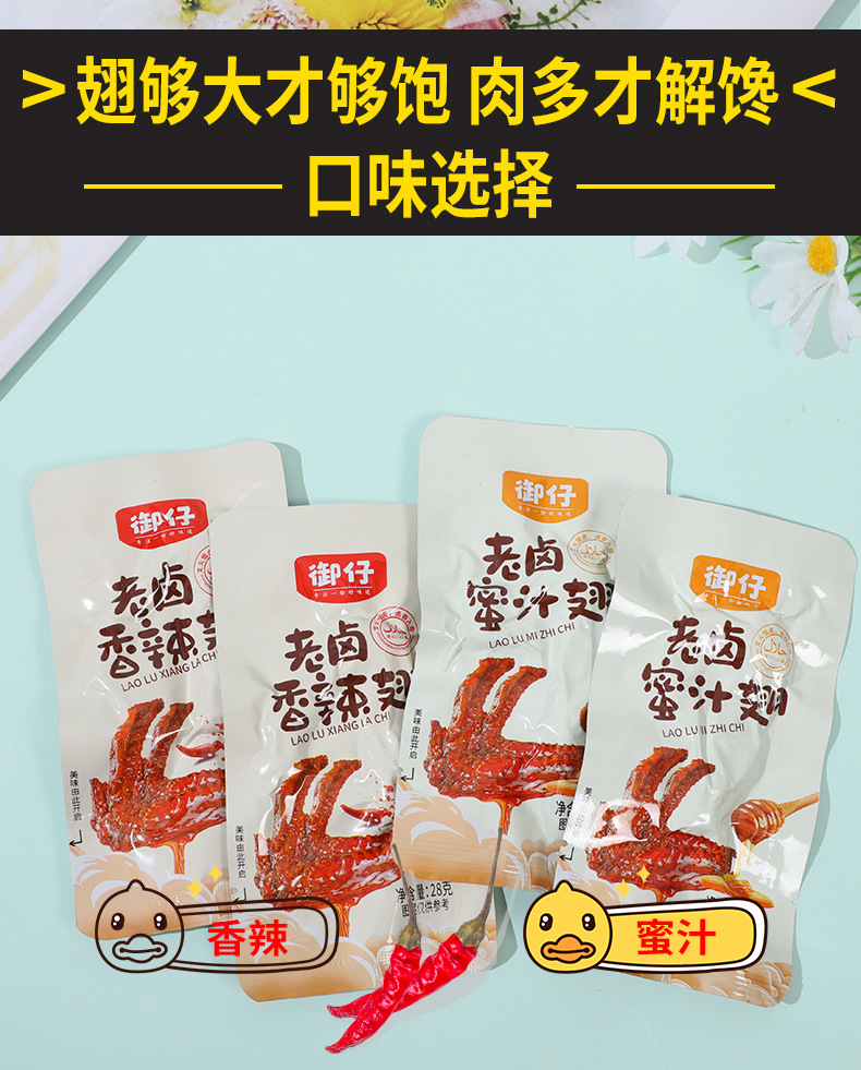 ![]() | 28g braised honey sauce wings | 10шт: ¥1.00, 30шт: ¥0.80, 50шт: ¥0.70 | 97700 | 5895643489889 |