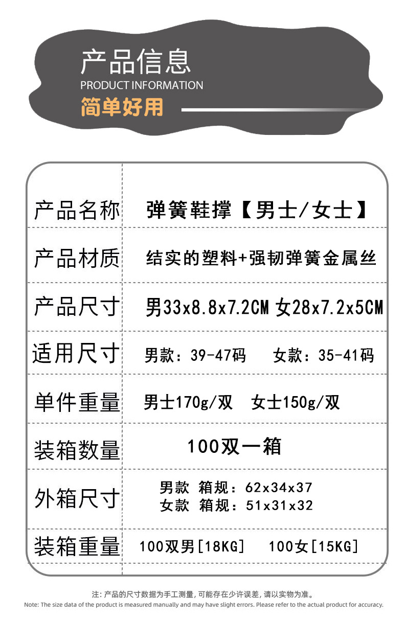尺码:男士均码(适合39-45码鞋子) 女士均码(适合35-40码鞋子)
