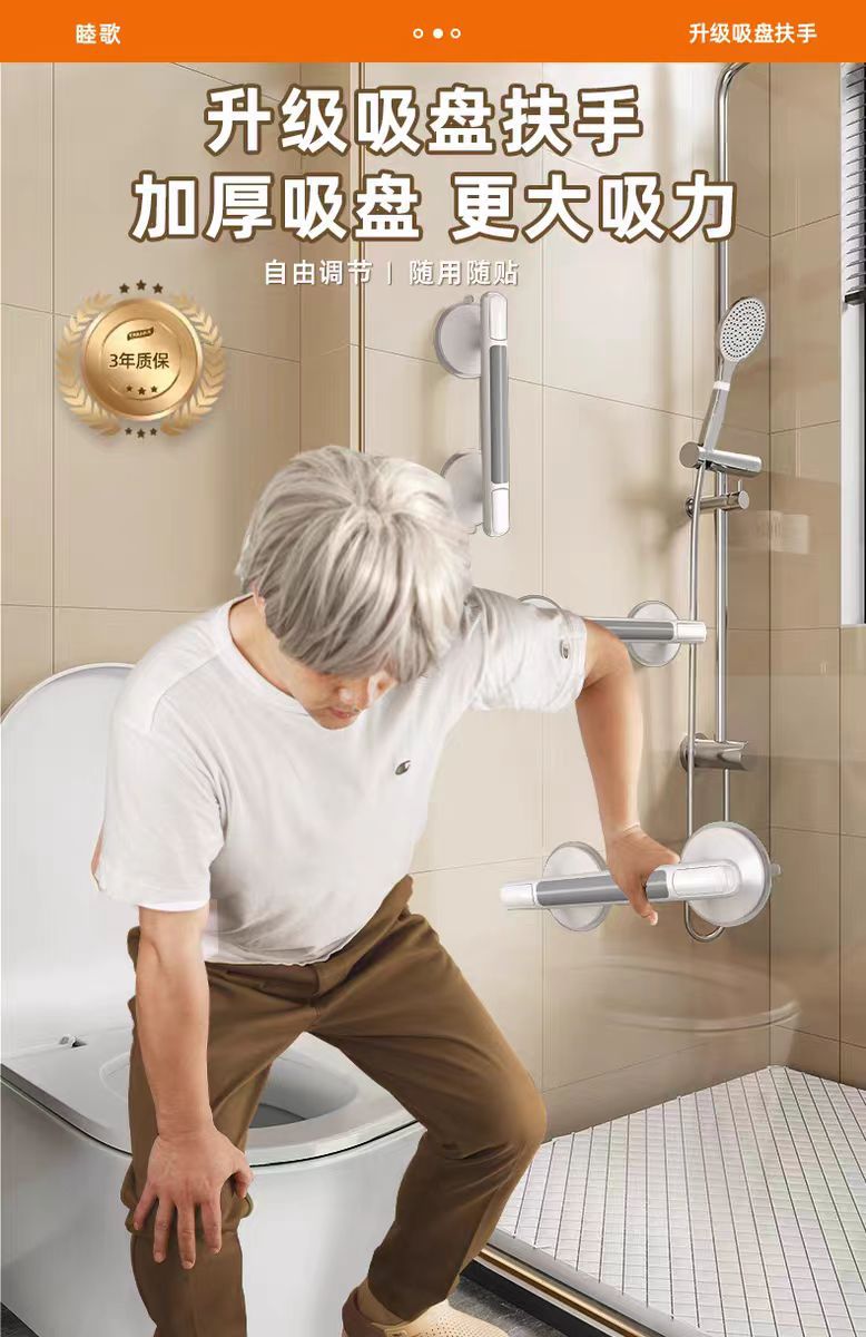 Поручни для ванной для пожилых людей, антискользящие, безсверловые, с присосками