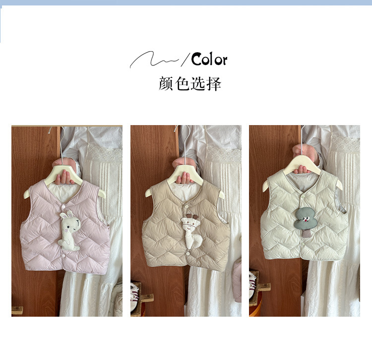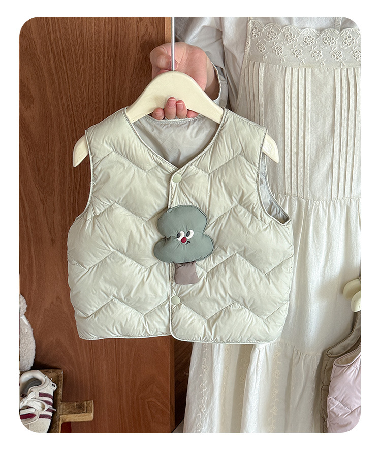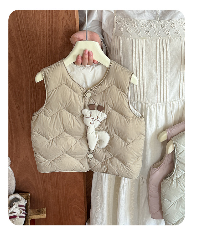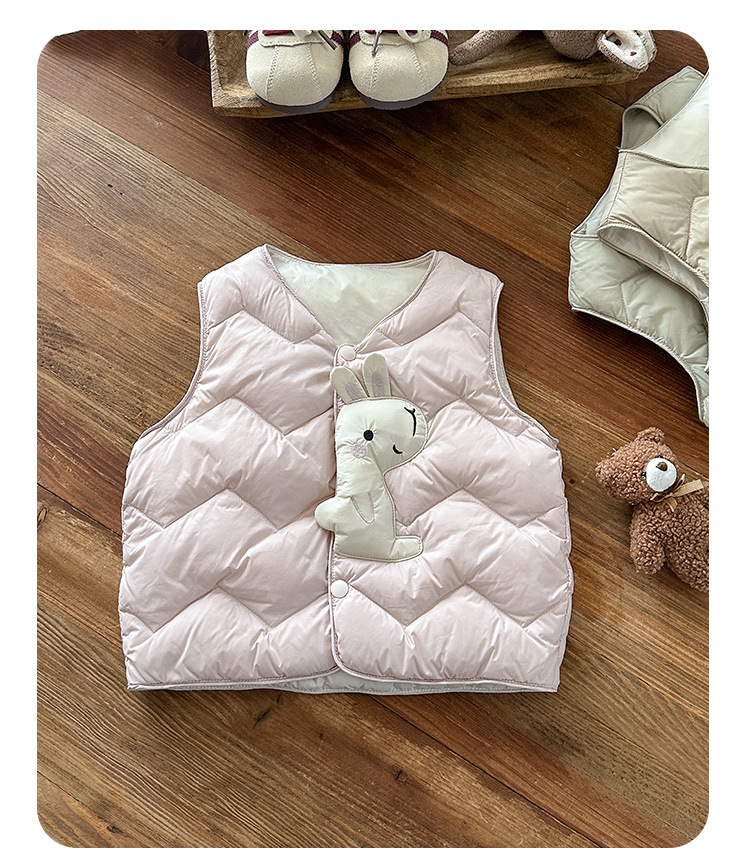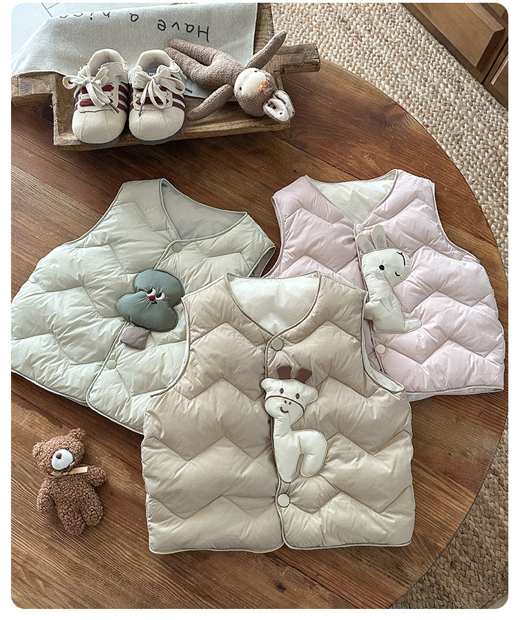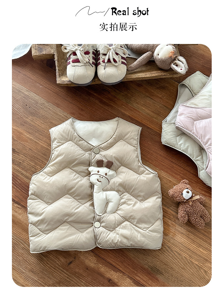 Детский пуховик без рукавов новый стиль, мультяшный жилет из белого утиного пуха для мальчиков и девочек, утолщенный и теплый, класс а