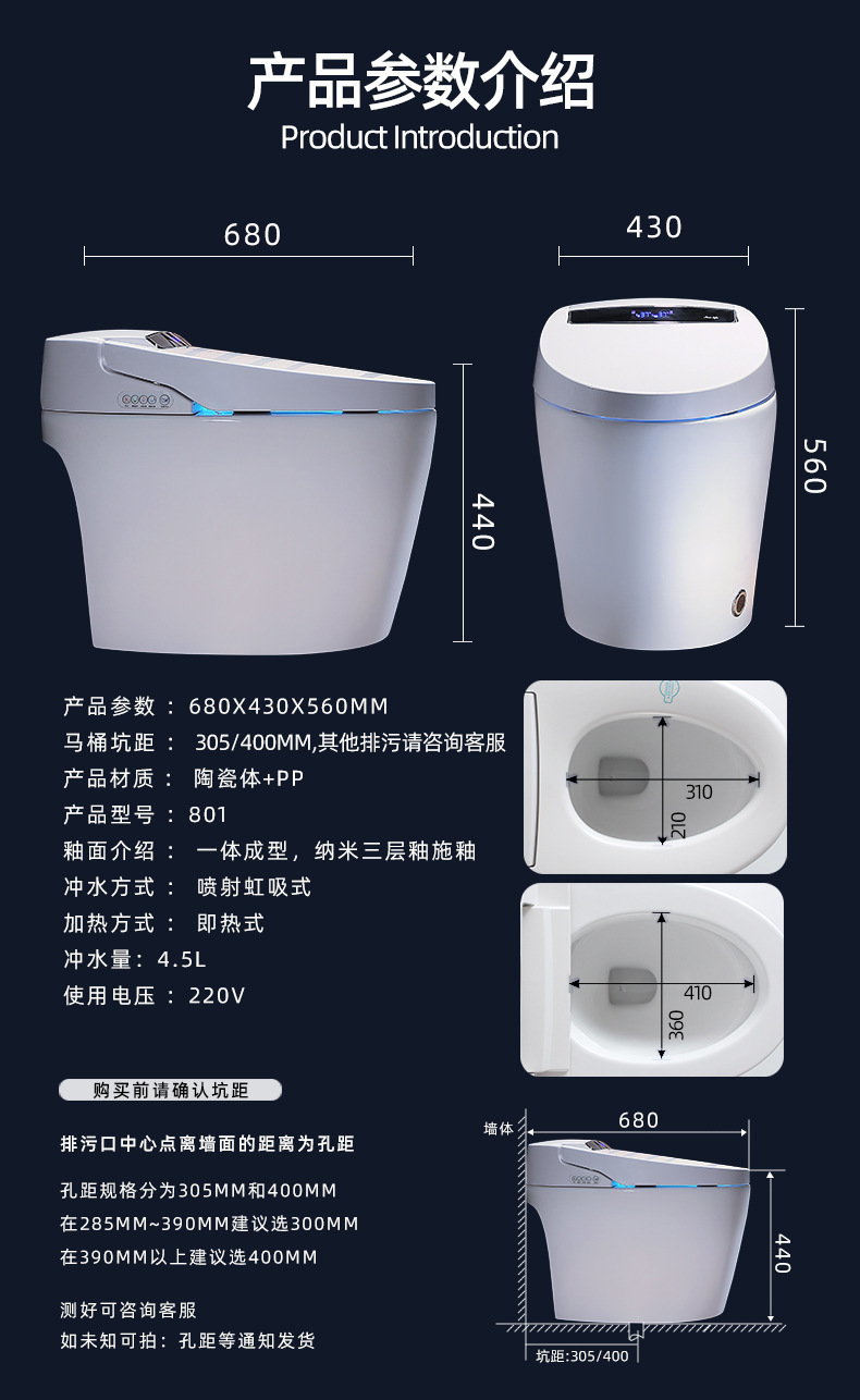 Умный туалет с автоматическим подъемом крышки, полностью автоматический, с мгновенным подогревом, голосовым управлением и защитой от брызг, без ограничения давления воды