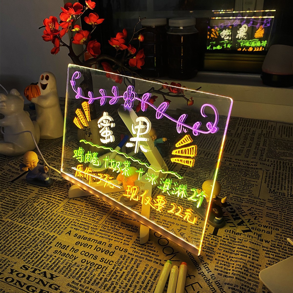 Маленькая стираемая черная доска для рекламы с подсветкой, светодиодная вывеска, флуоресцентная доска