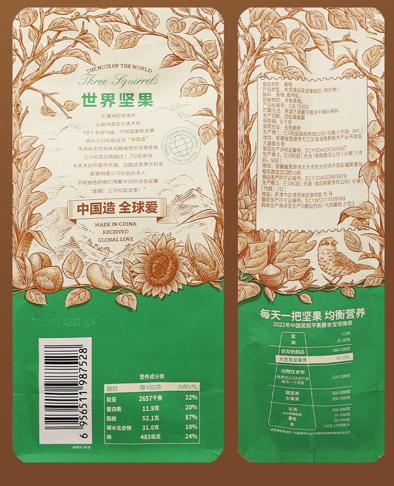 ![]() | Three squirrels torreya 100gx5 bags | ¥47.5 / ≈ 572 ₽ | 10000 | 5896162233800 | |