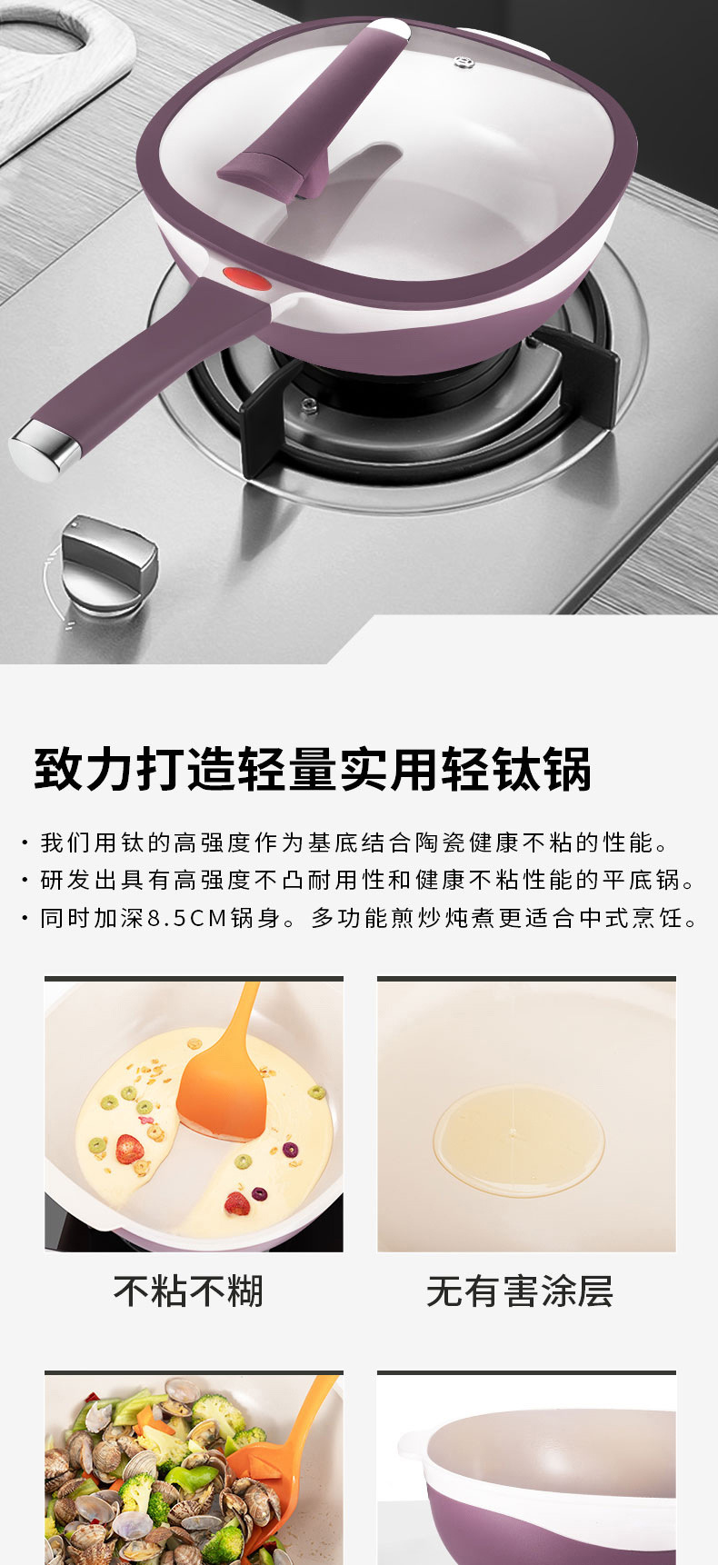 Популярная титановая керамическая сковорода для индукционных плит, титановая керамическая сковорода без покрытия, здоровая и бездымная многофункциональная кастрюля для домашнего использования