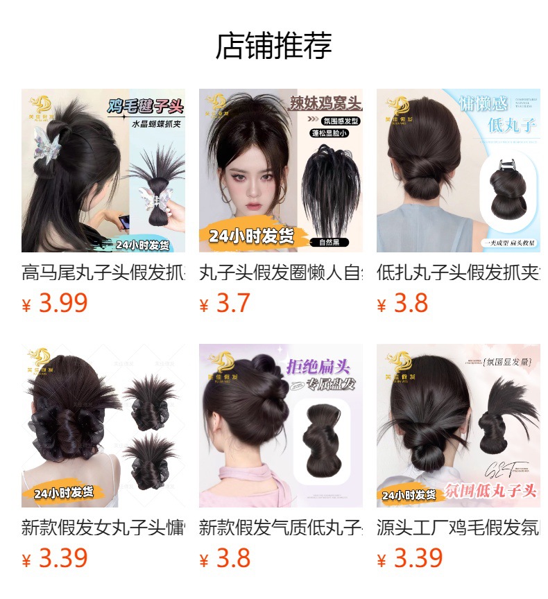 假发 子头假发 抓夹款 发圈 花苞头 边发圈 厂家直发 现货 一件代发 发圈子