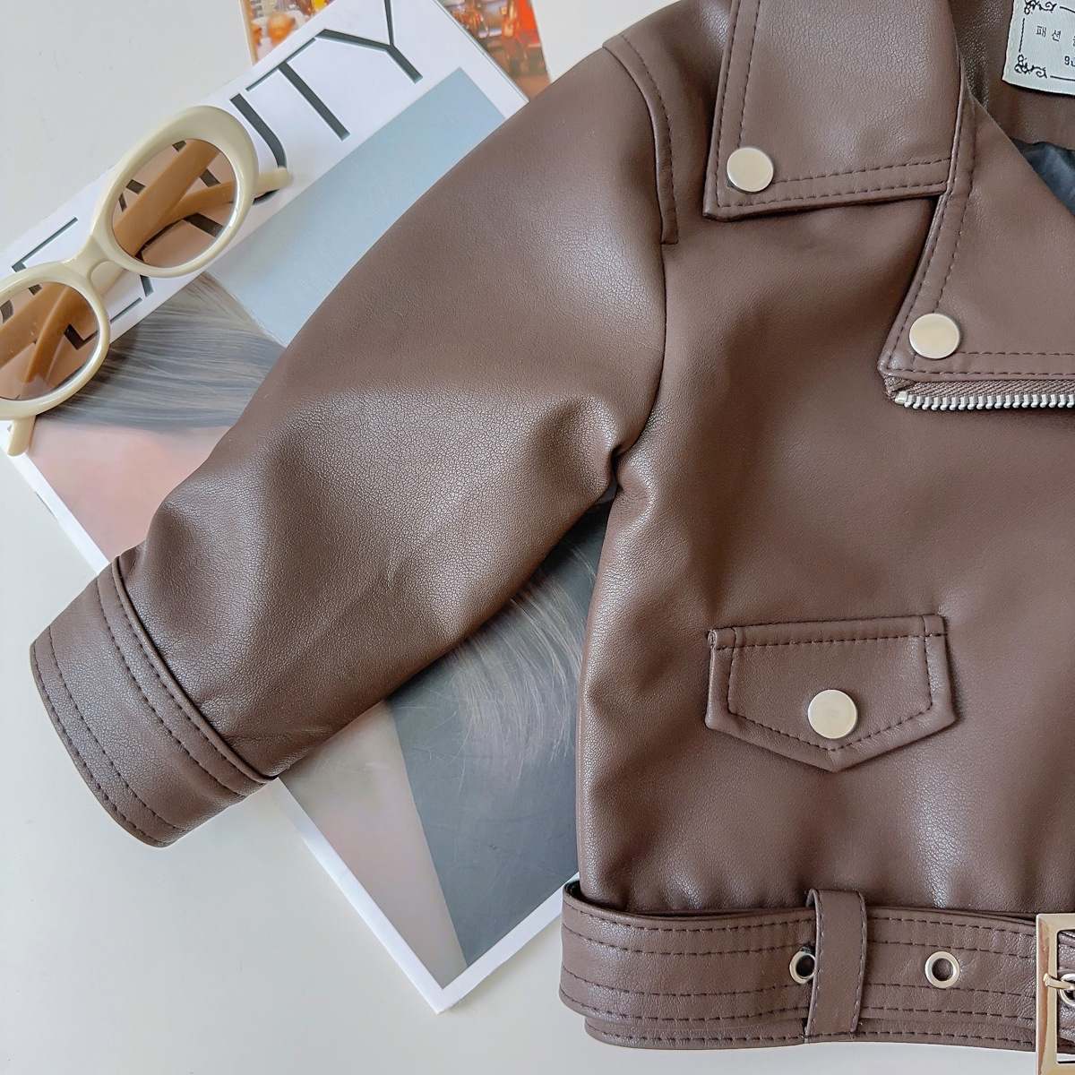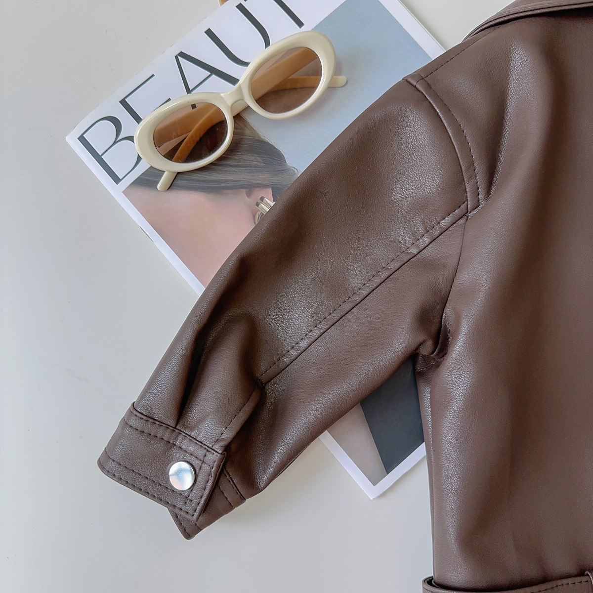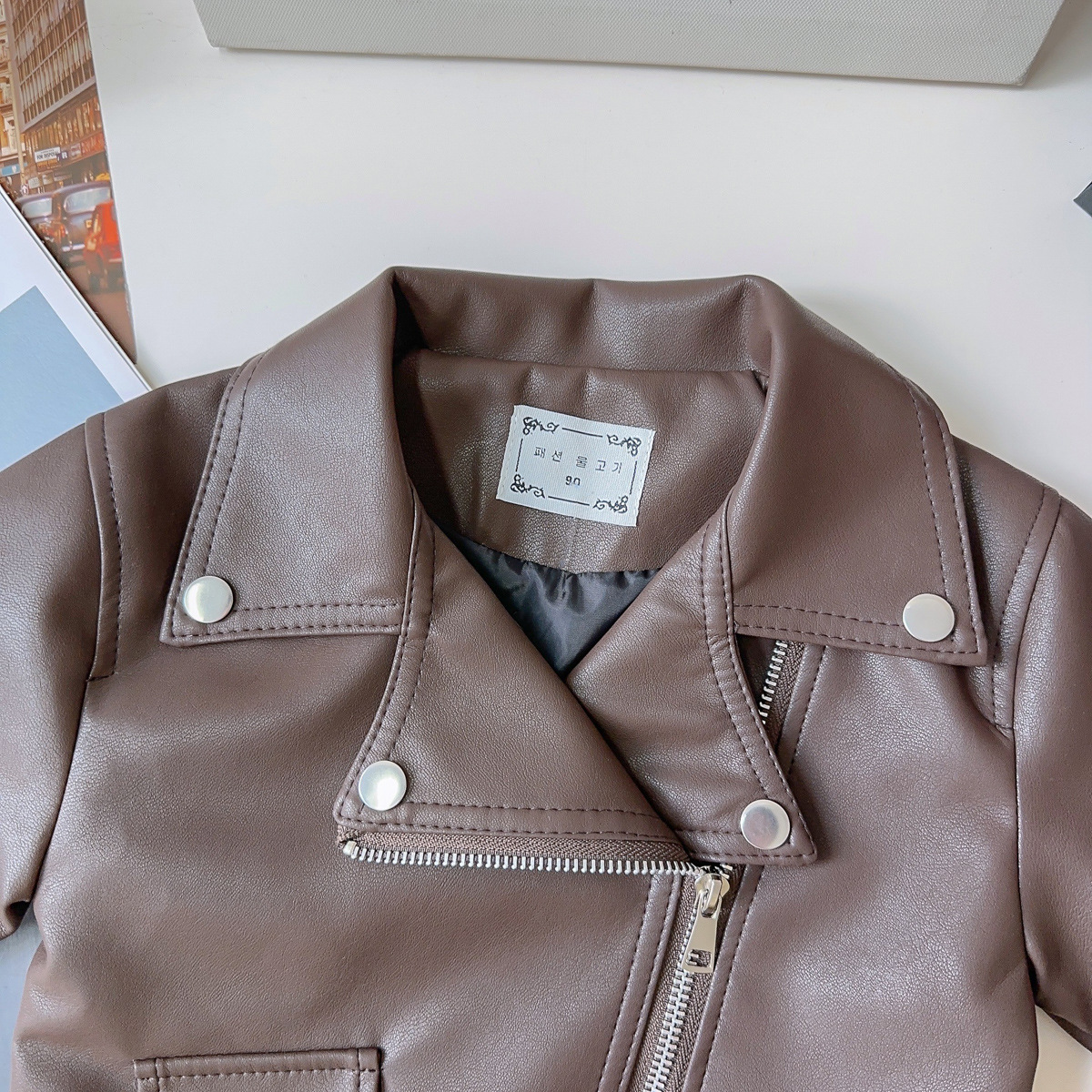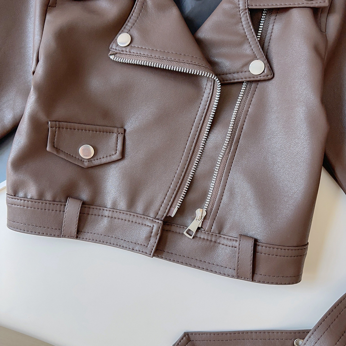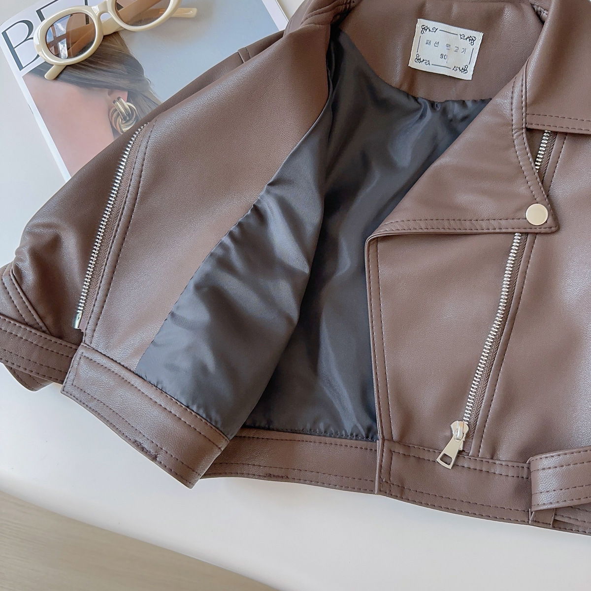Корейская кожаная куртка для девочек весна-осень новый модный жакет короткая кожаная куртка для мотоцикла Aqb009