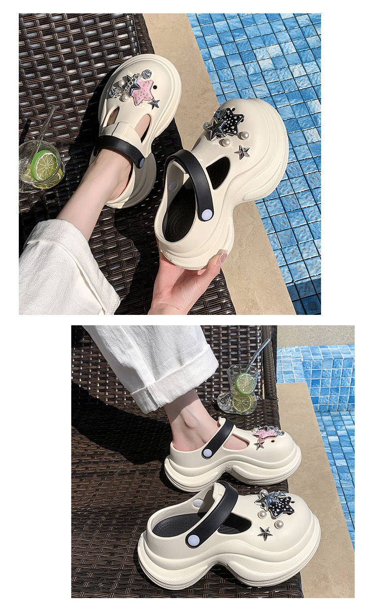 Модные Летние Сандалии с Платформой и Перфорацией 2025 для Женщин, Непоскользящие Увеличивающие Высоту Закрытые Сандалии