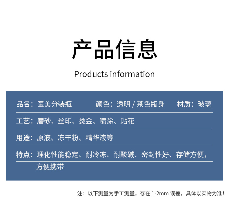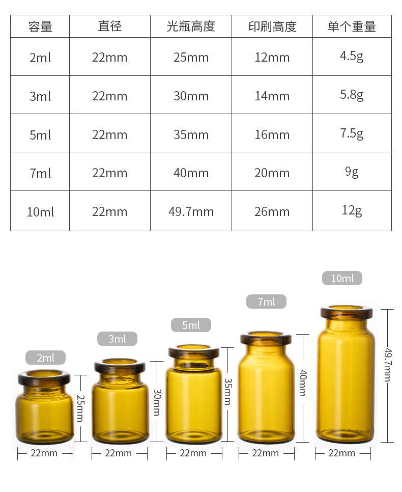 Характеристики 3ml(22*27mm), 10ml(22*50mm), 5ml(22*35mm), 7ml(22*40mm)