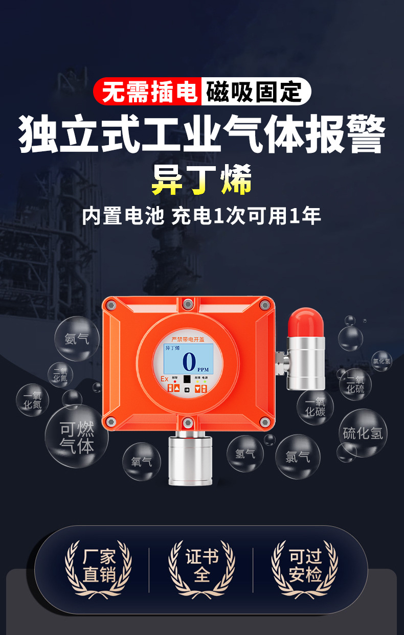 Детектор оксида азота, фиксированный, магнитный, беспроводной, для химических мастерских, сигнализация концентрации