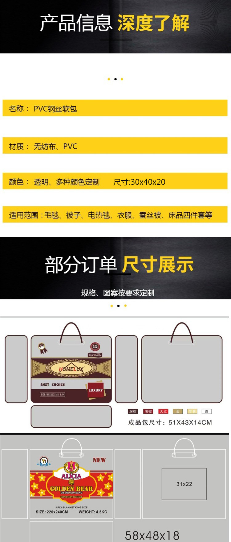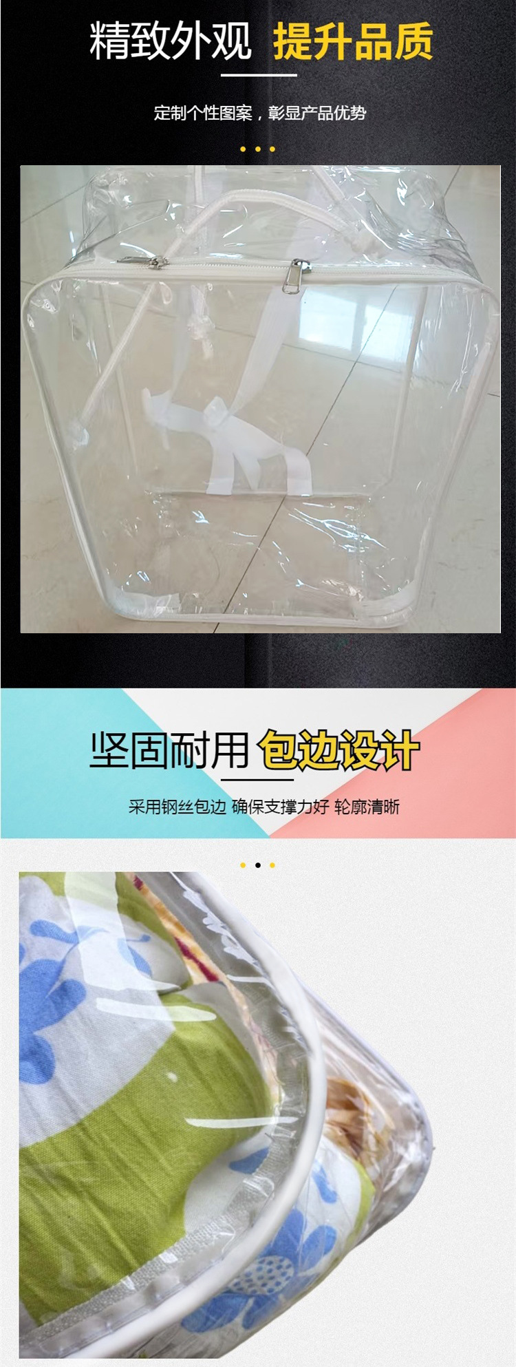 Прозрачная ПВХ упаковочная сумка с прозрачной стальной проволокой для домашнего текстиля сумка для хранения постельного белья 30*40*20 прозрачная сумка для одеял